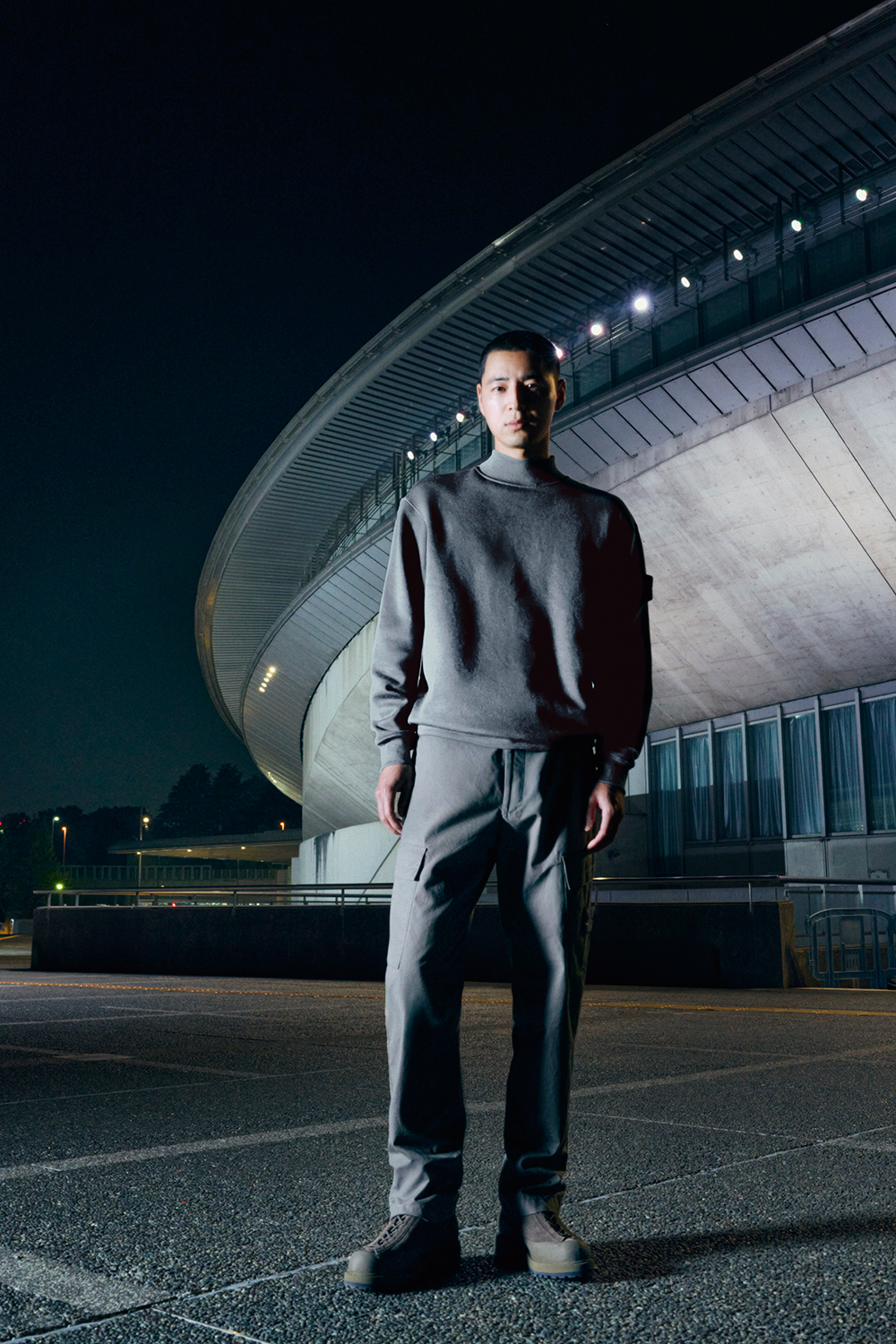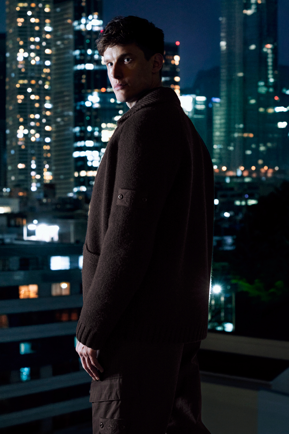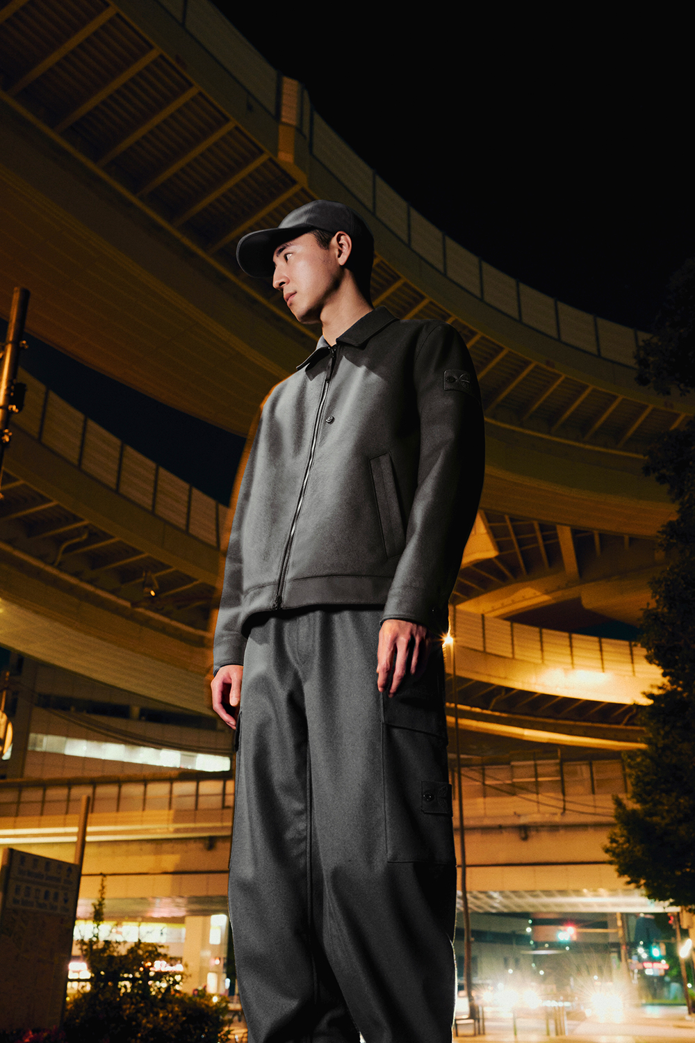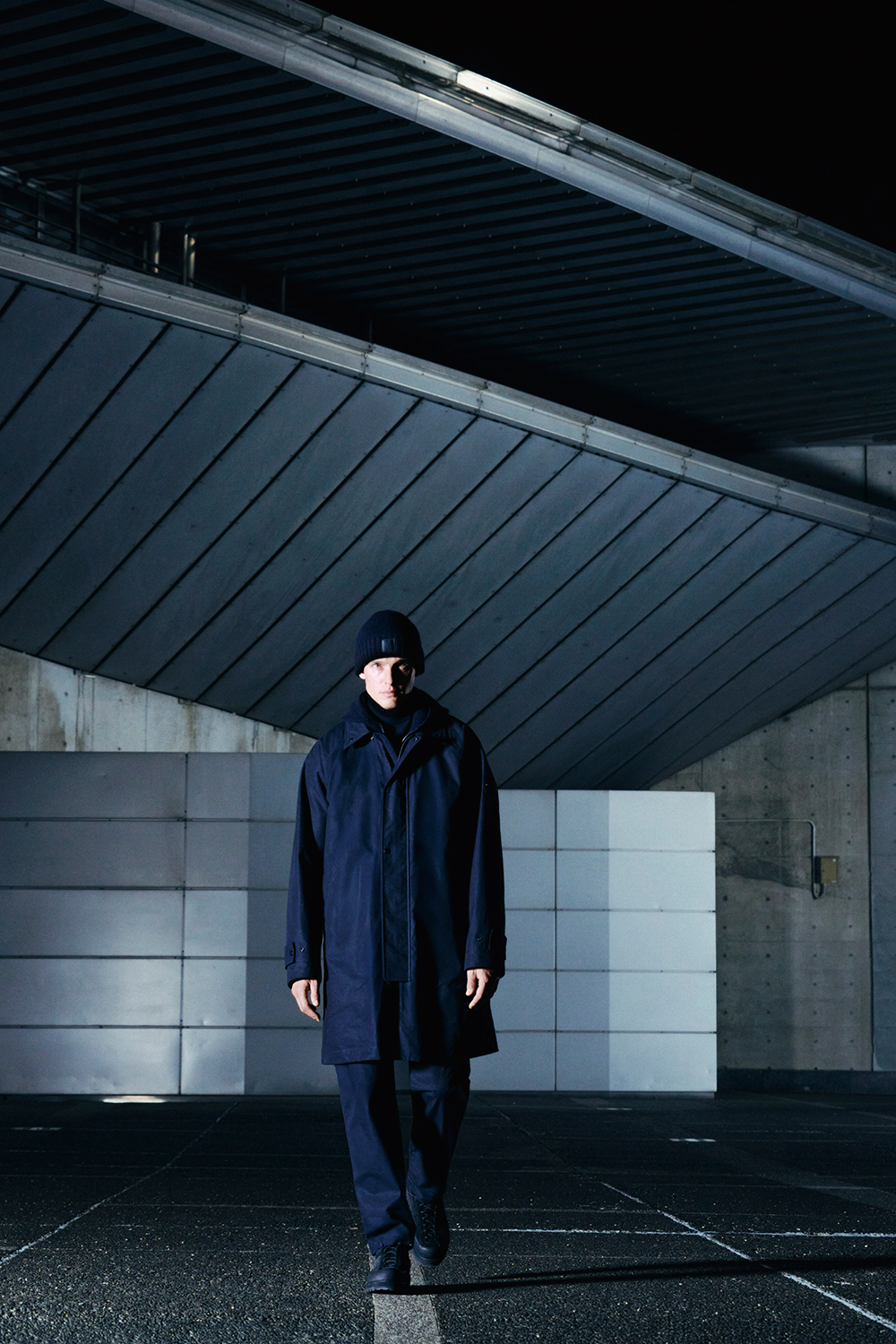 モノクロームで完全に統一され、都市における”究極のカモフラージュ”を表現している『STONE ISLAND GHOST』だが、今季は日本のブルータリズム建築から着想を得て、ブラック、ブラウン、ダークブルー、グレーといったシェードを行き来しながら展開。