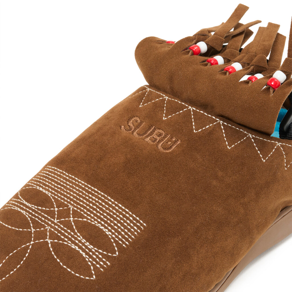 今回は、ネイティブアメリカンが履いていた1枚革から作られたモカシンシューズをモチーフとしたウィンターサンダルを製作。