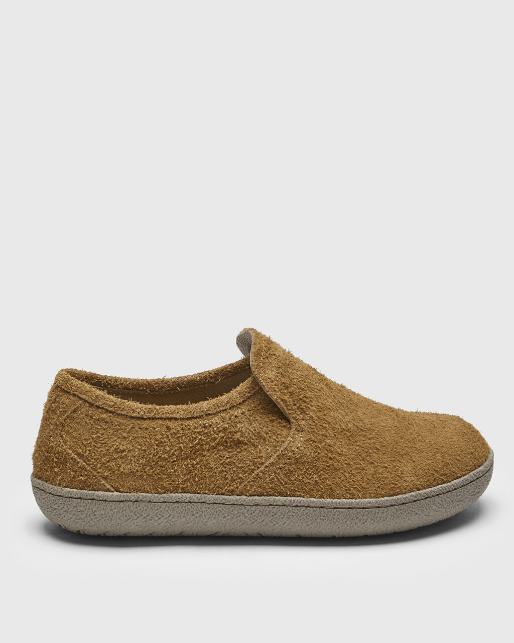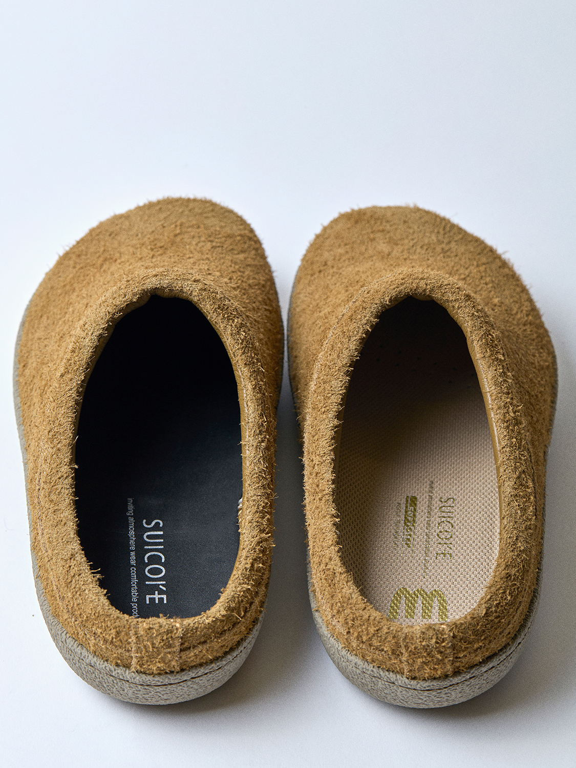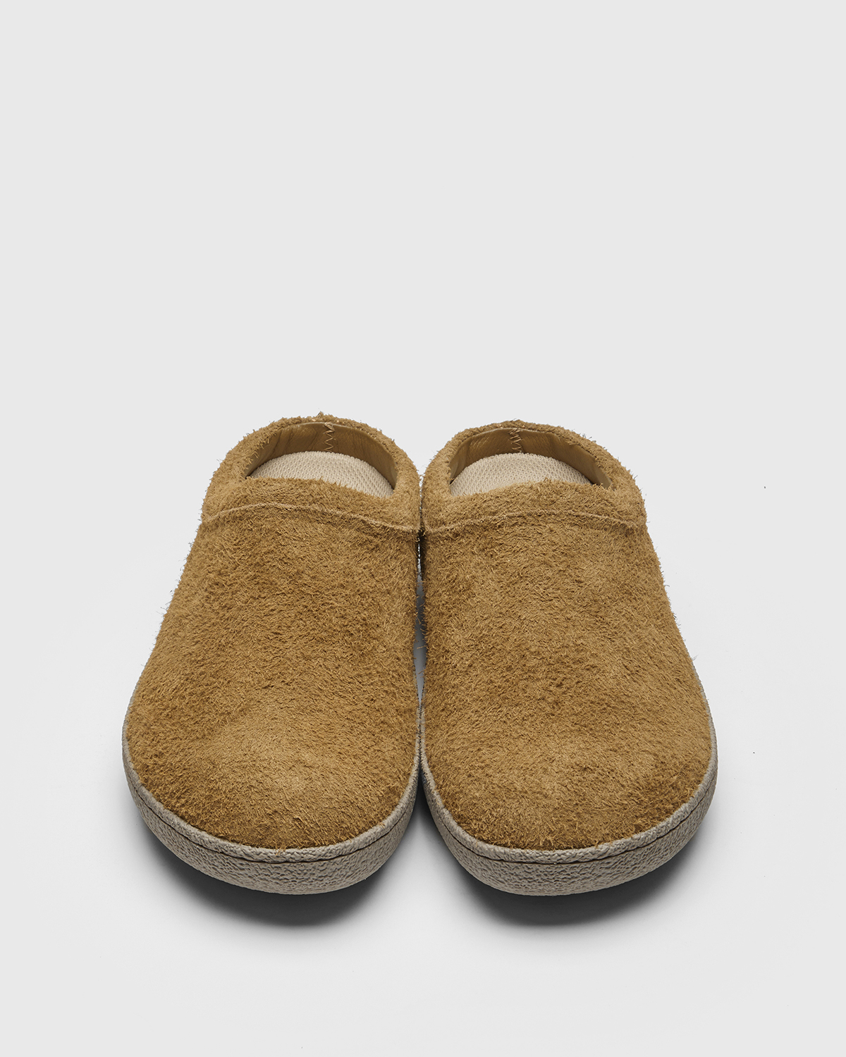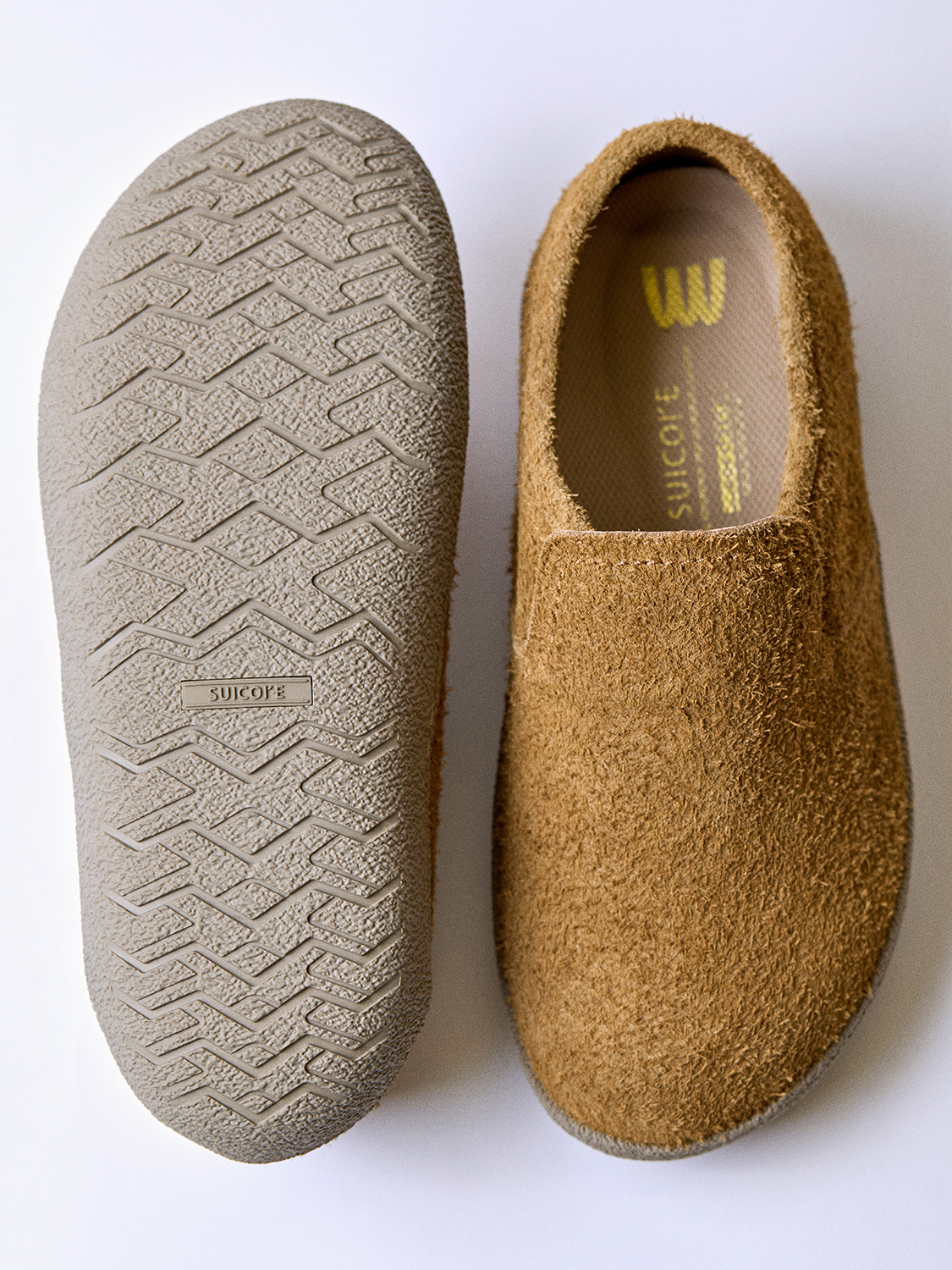 一度足を通して数歩歩けばすぐに実感出来る、不思議な履き心地、”妙な”デザインが特徴的な『POWN』だが、MIN-NANOとはキャメルの別注色を製作。