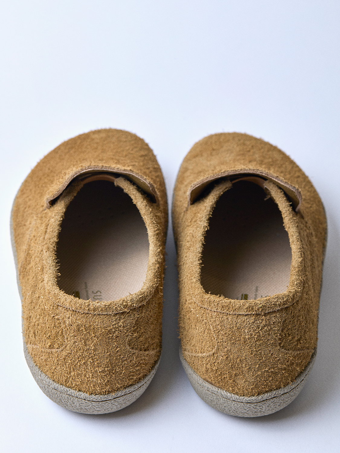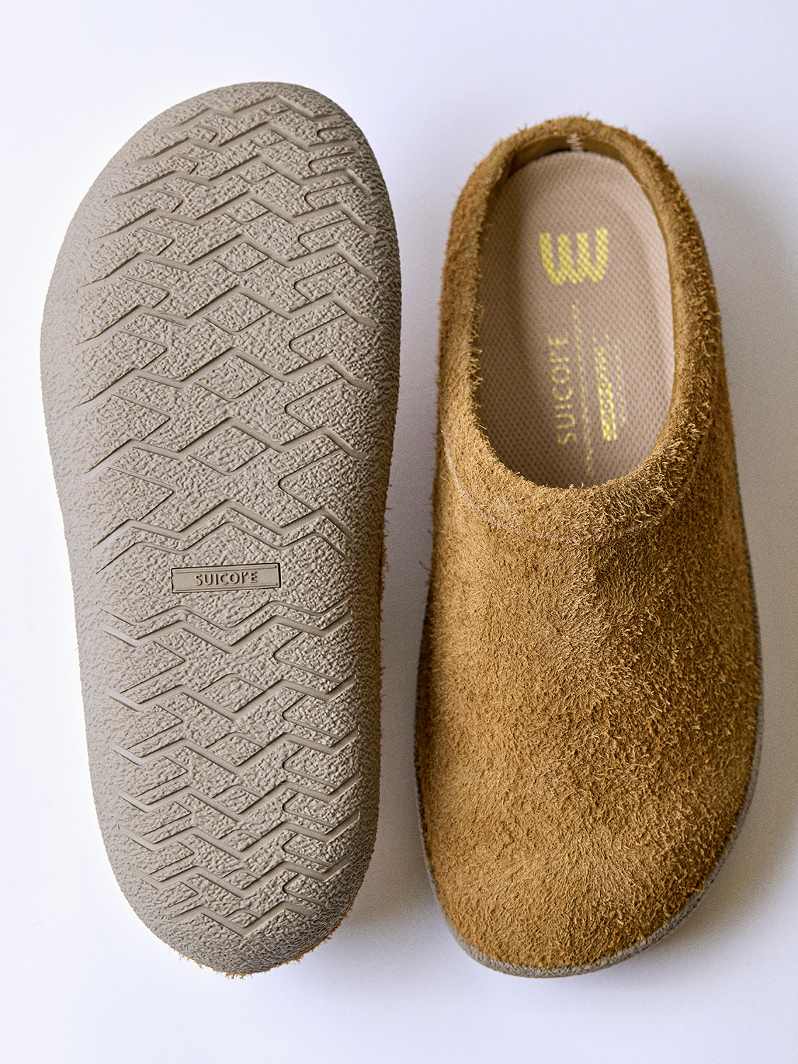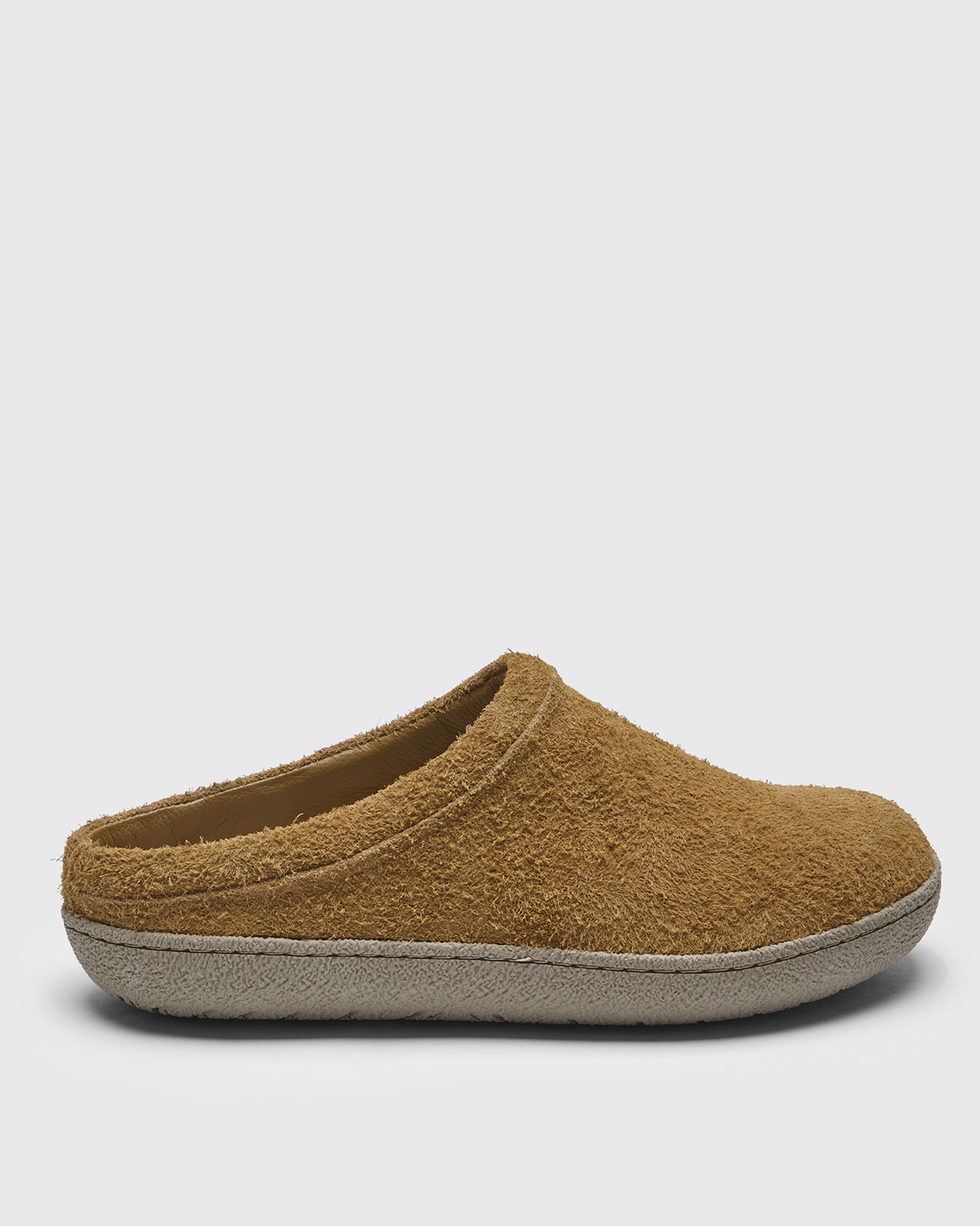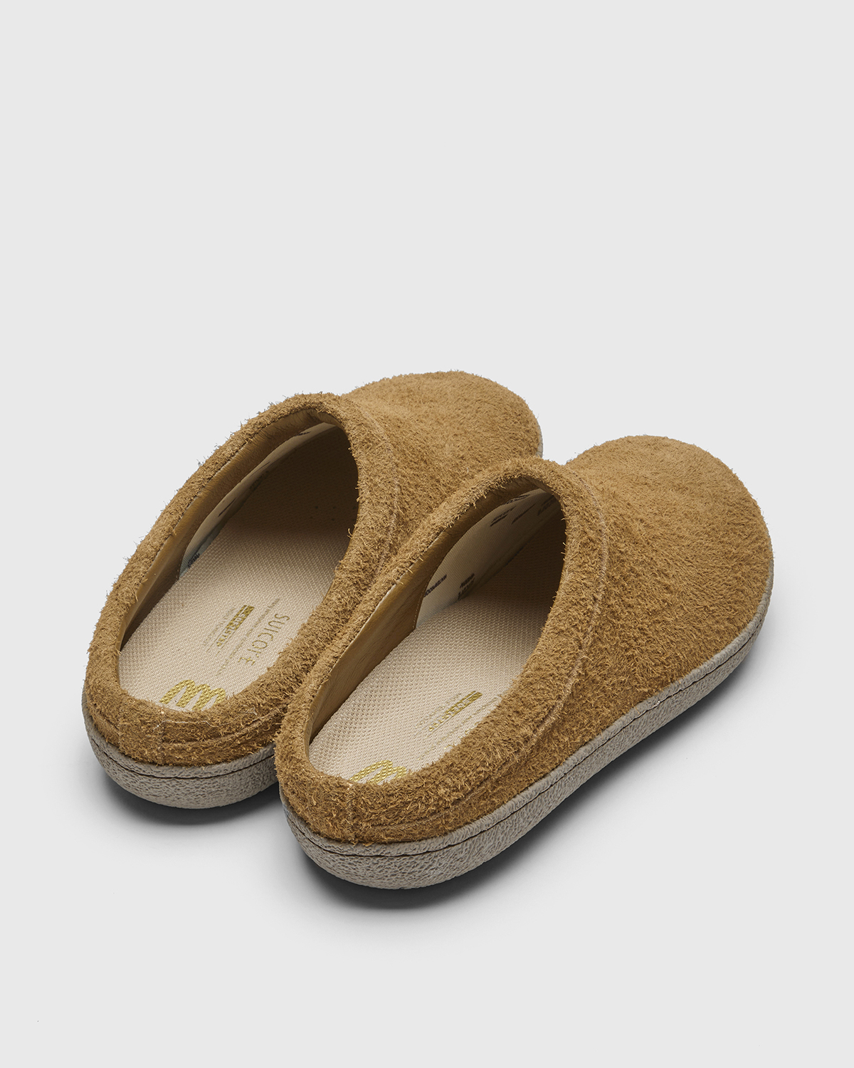 一度足を通して数歩歩けばすぐに実感出来る、不思議な履き心地、”妙な”デザインが特徴的な『POWN』だが、MIN-NANOとはキャメルの別注色を製作。