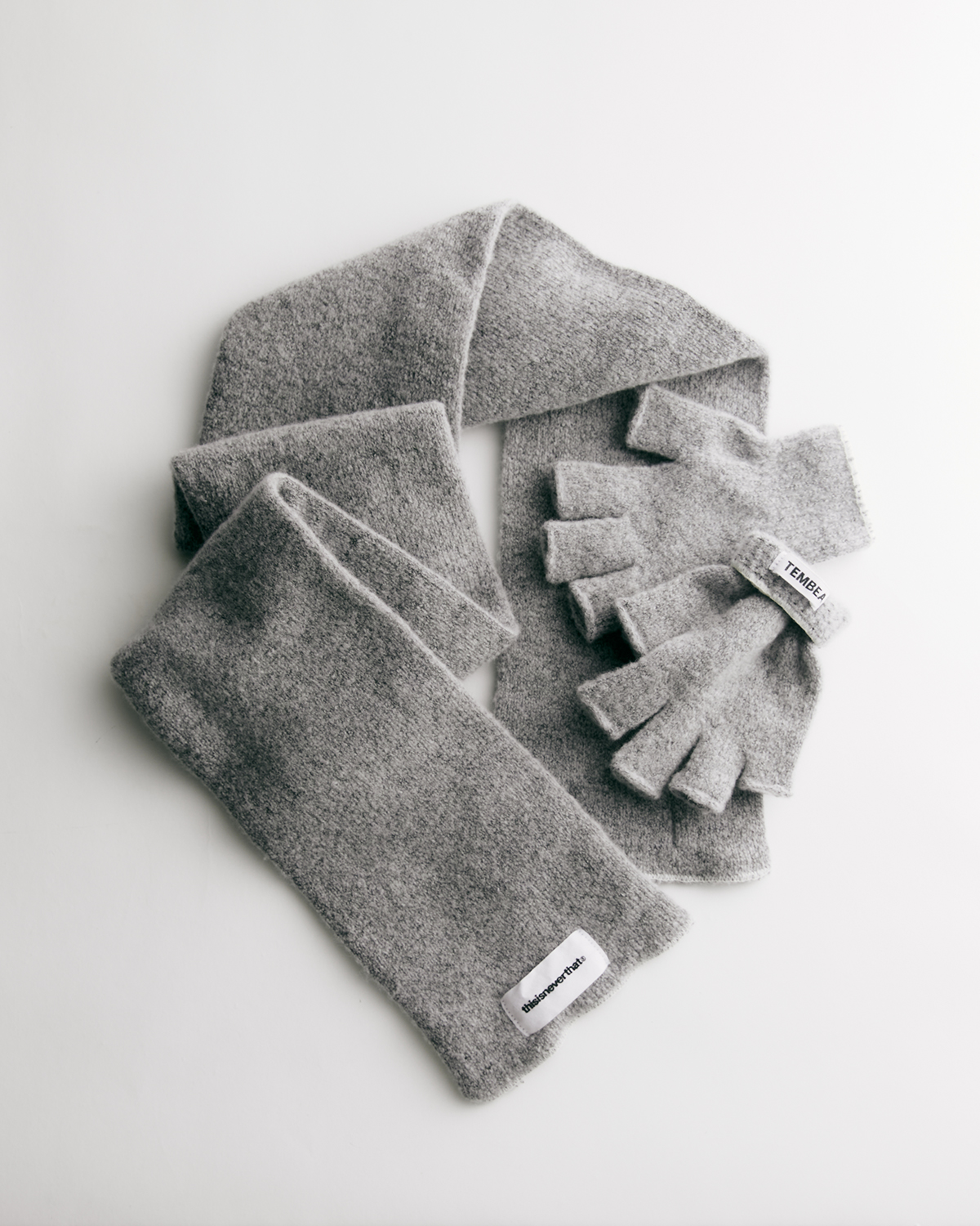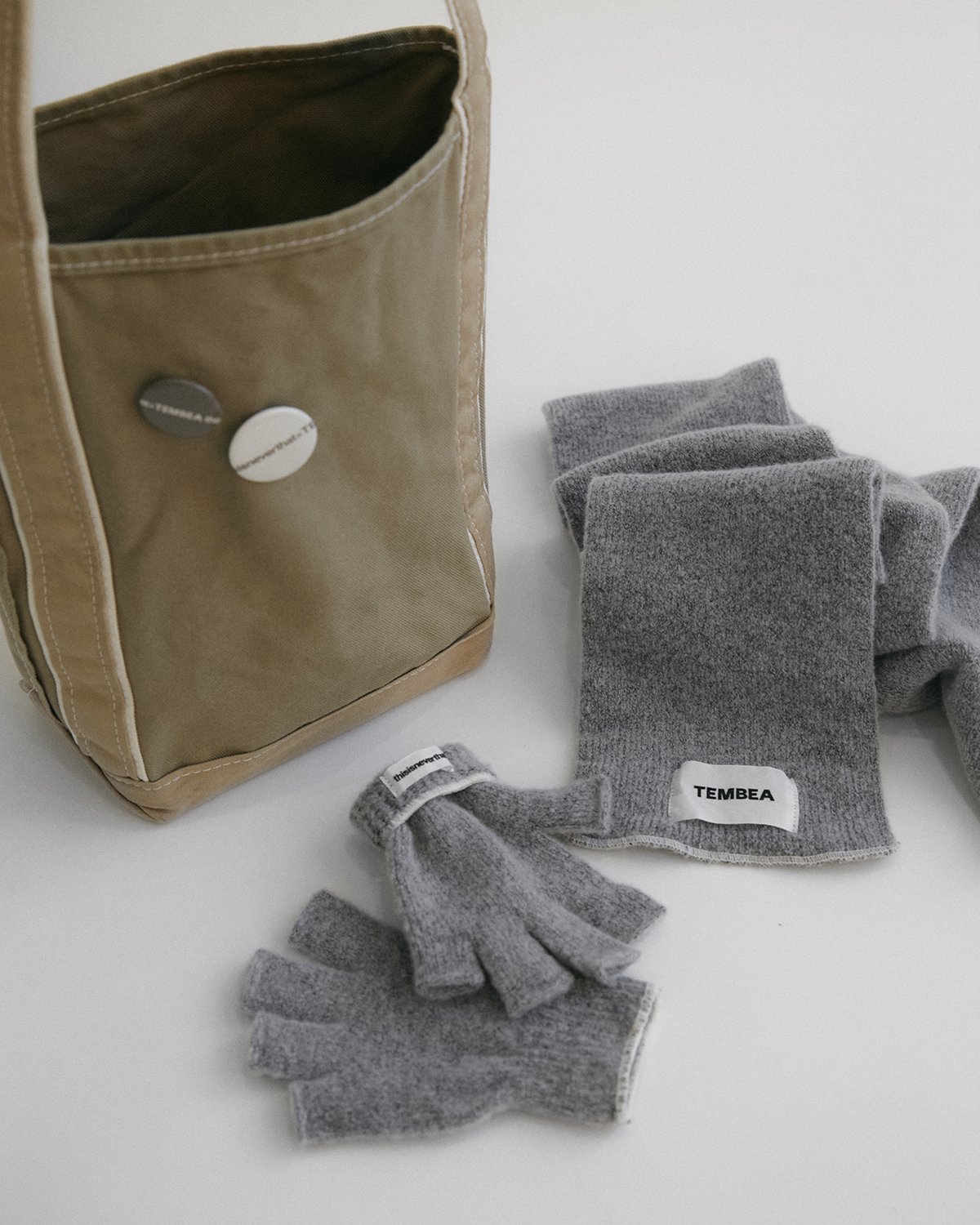 今季は、TEMBEAのステディセラーであるバゲットバッグに加え、冬のスタイリングに幅広く活躍するフィンガーレスグローブやマフラーもラインナップ。