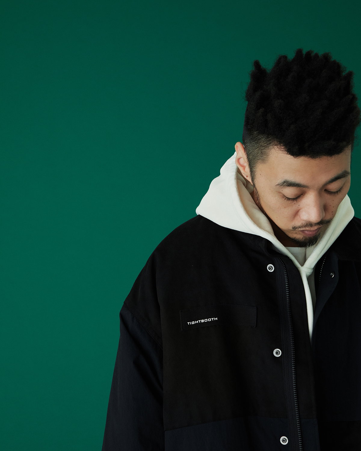 今季は、ミリタリーをデザインベースとしつつも、ドレープができる生地など、TIGHTBOOTHらしい滑らかさ・柔らかさのある素材を採用したプロダクトを多数展開。