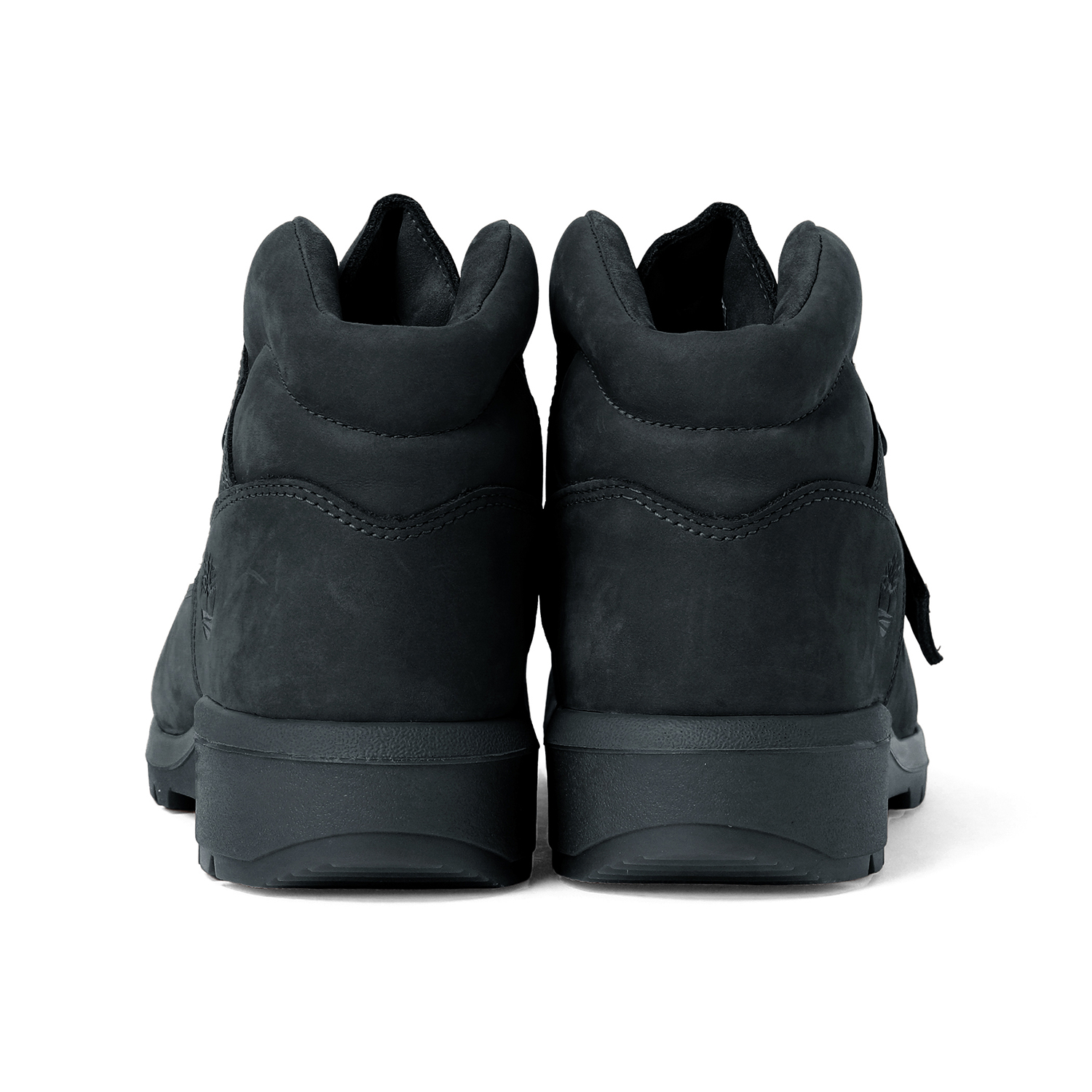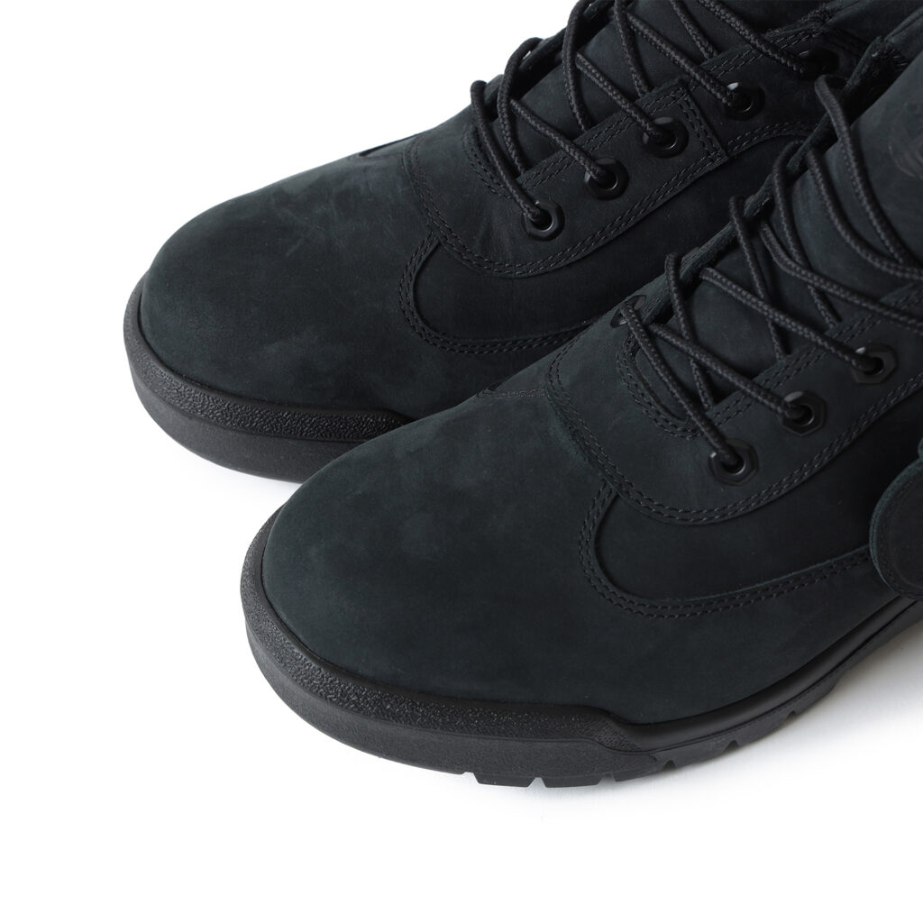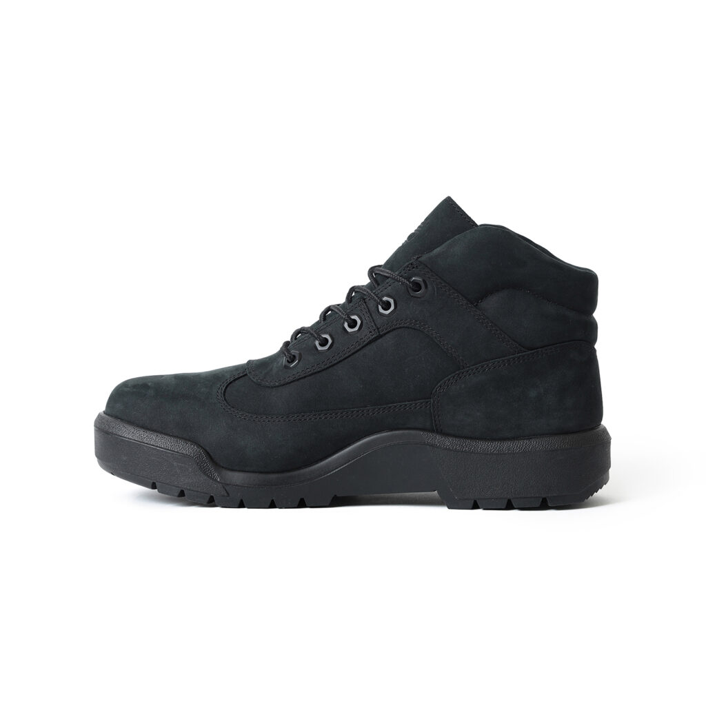 アッパーにはブラックカラーのヌバックレザーを採用し、通常の『Field Boots』とは異なる鳩目の仕様や生地の切り替えを排することで、無骨な表情を残しつつも、より上質で洗練された佇まいへと昇華させた。