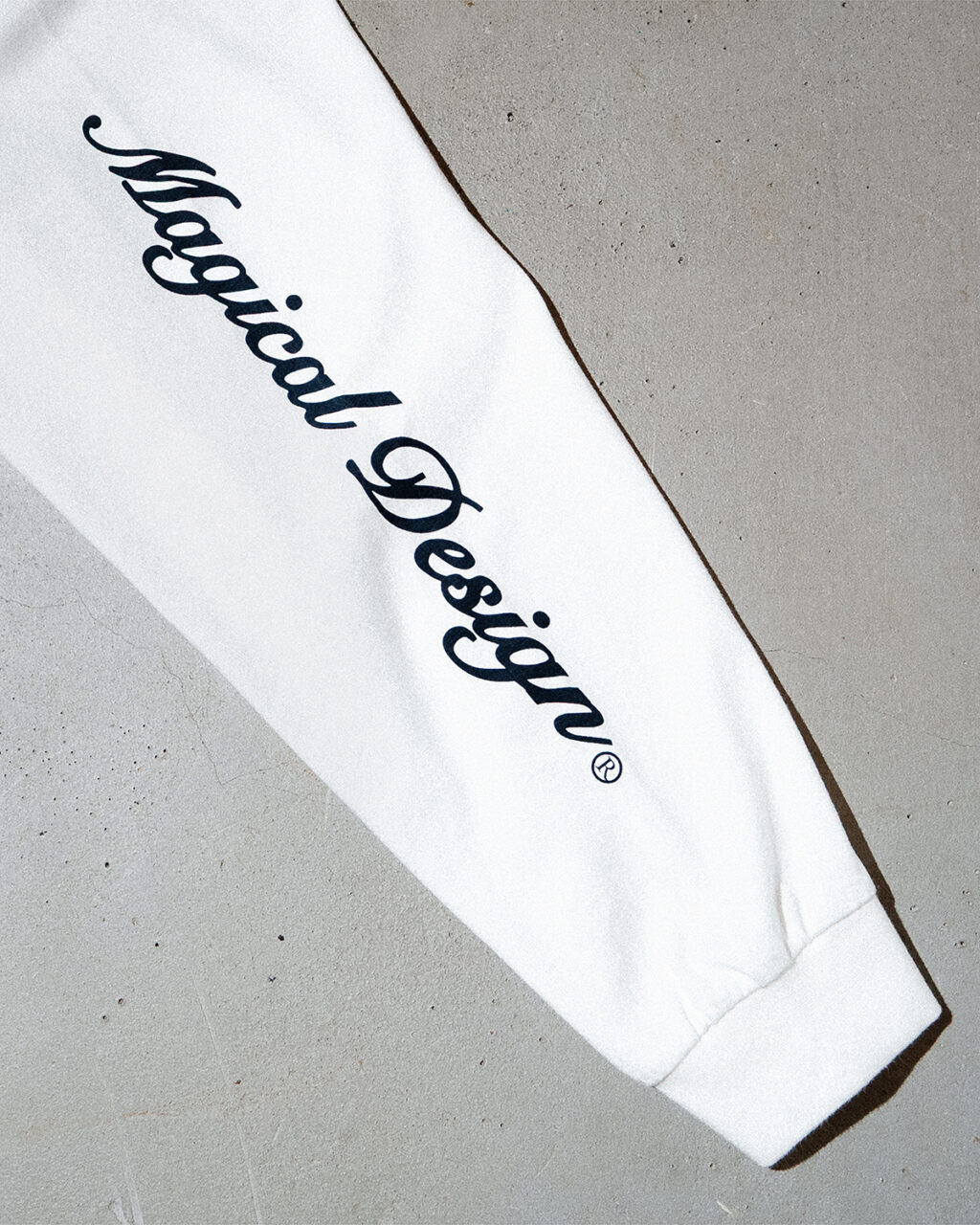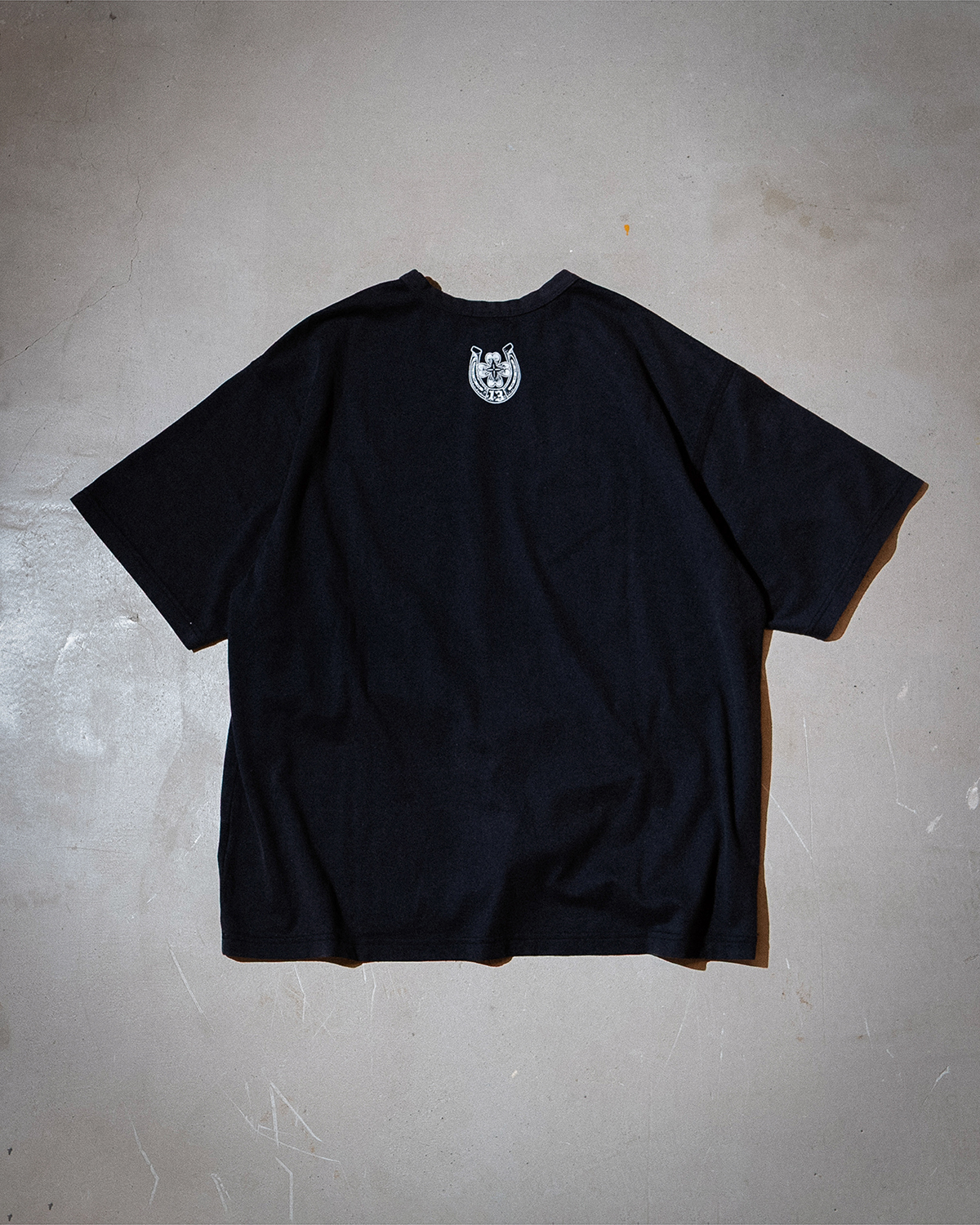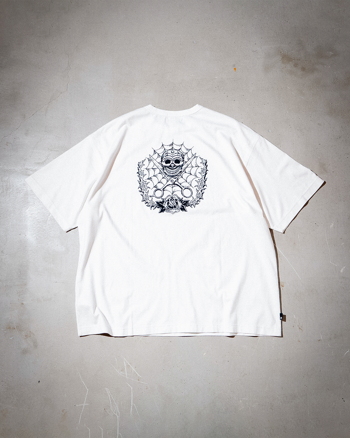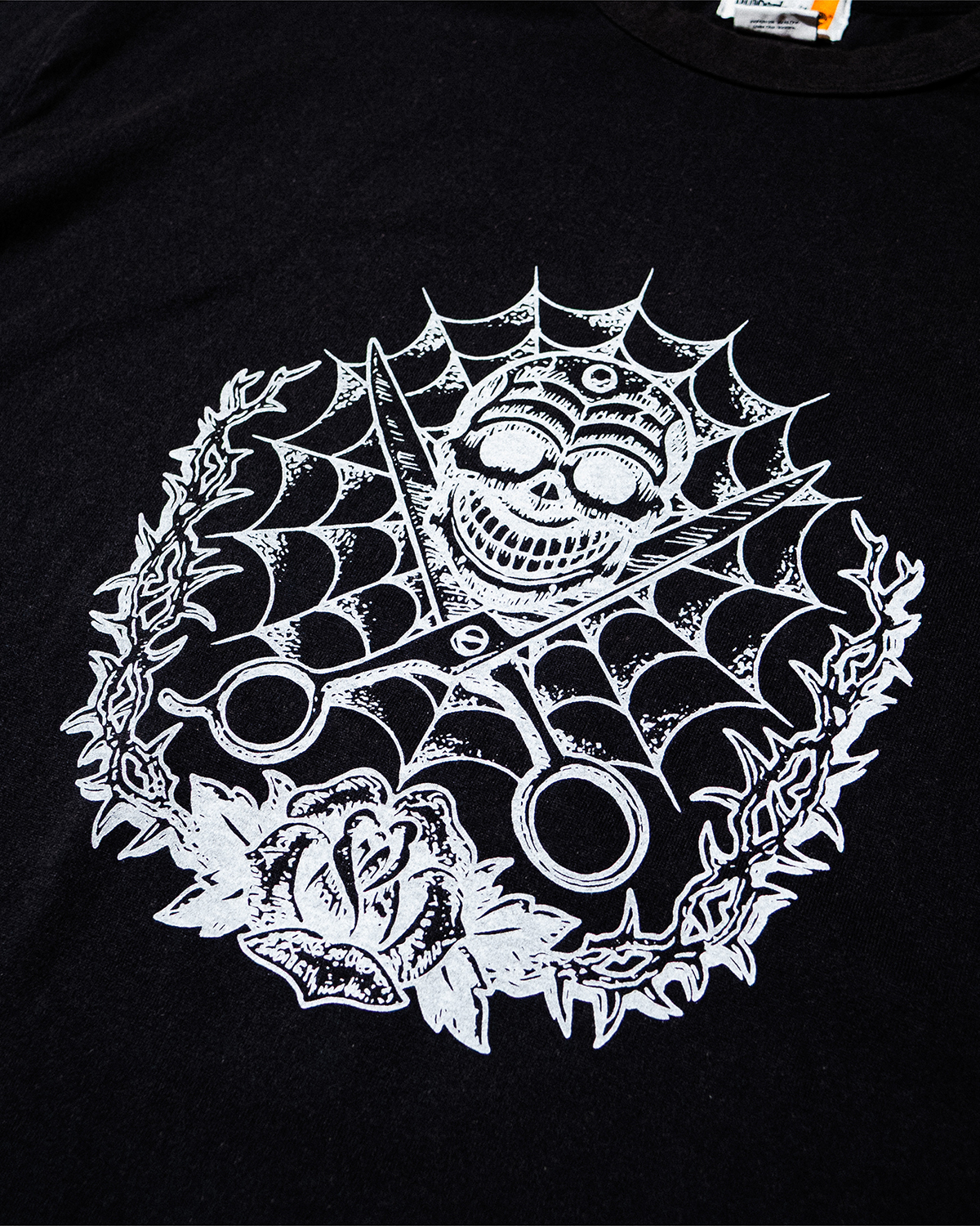 イエローブーツは、アイコニックなシルエットや素材はそのままに、日本発のシルバーアクセサリーブランドであるMAGICAL DESIGN(マジカル デザイン)を手掛ける内山英雄がデザインしたクロやツバメなどのオリジナルモチーフをアッパーの随所に刻印。Tシャツにも同モチーフを大胆に引用している。
