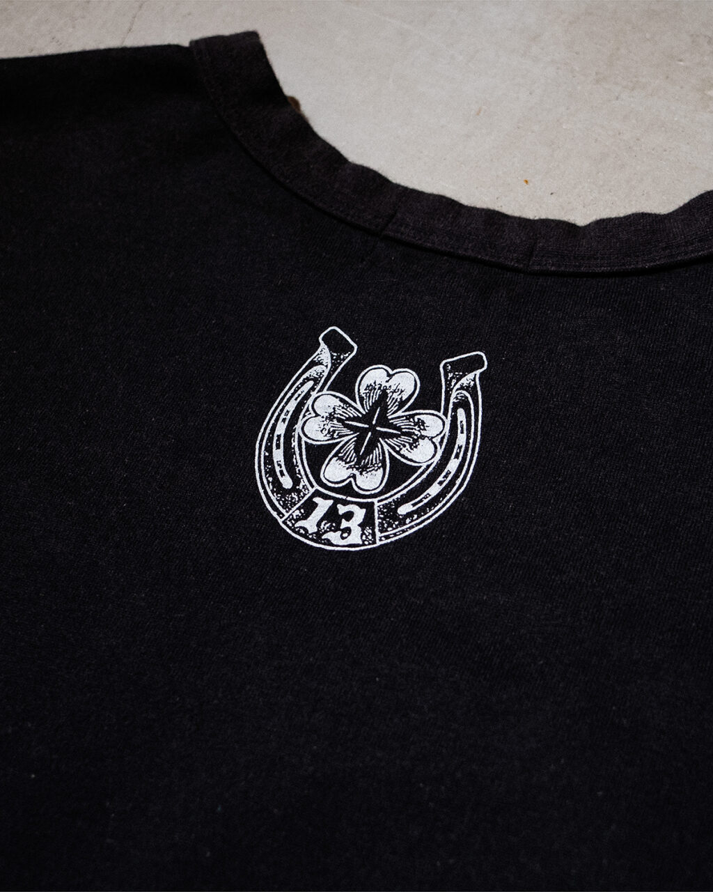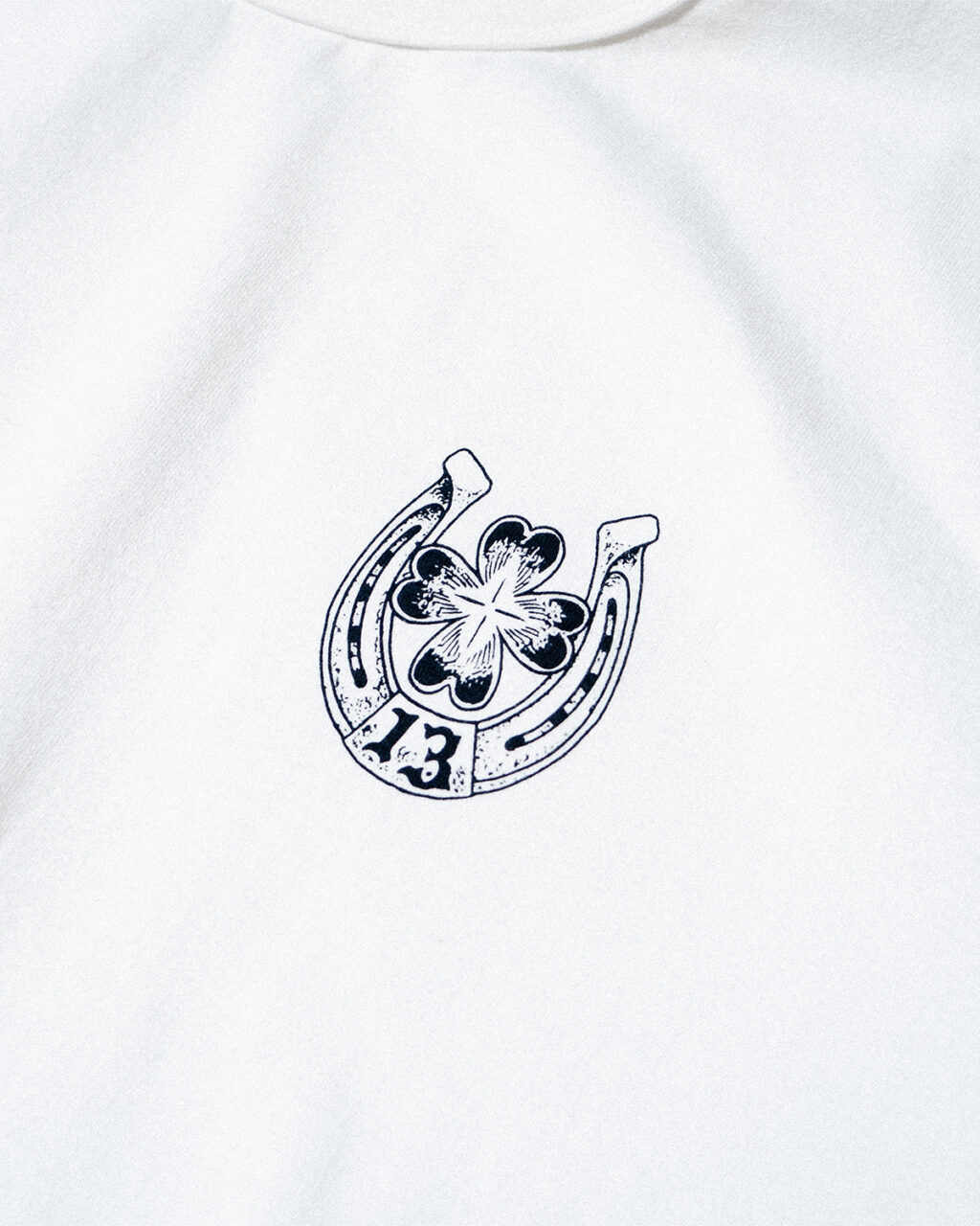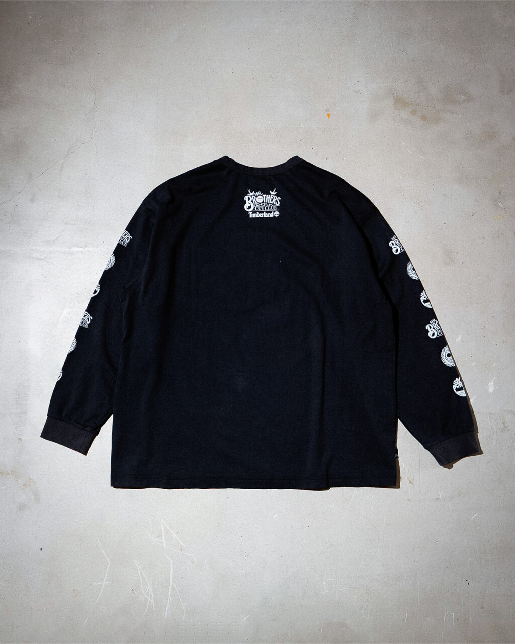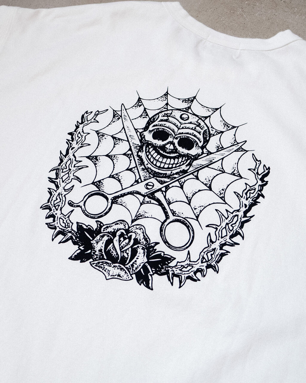 イエローブーツは、アイコニックなシルエットや素材はそのままに、日本発のシルバーアクセサリーブランドであるMAGICAL DESIGN(マジカル デザイン)を手掛ける内山英雄がデザインしたクロやツバメなどのオリジナルモチーフをアッパーの随所に刻印。Tシャツにも同モチーフを大胆に引用している。