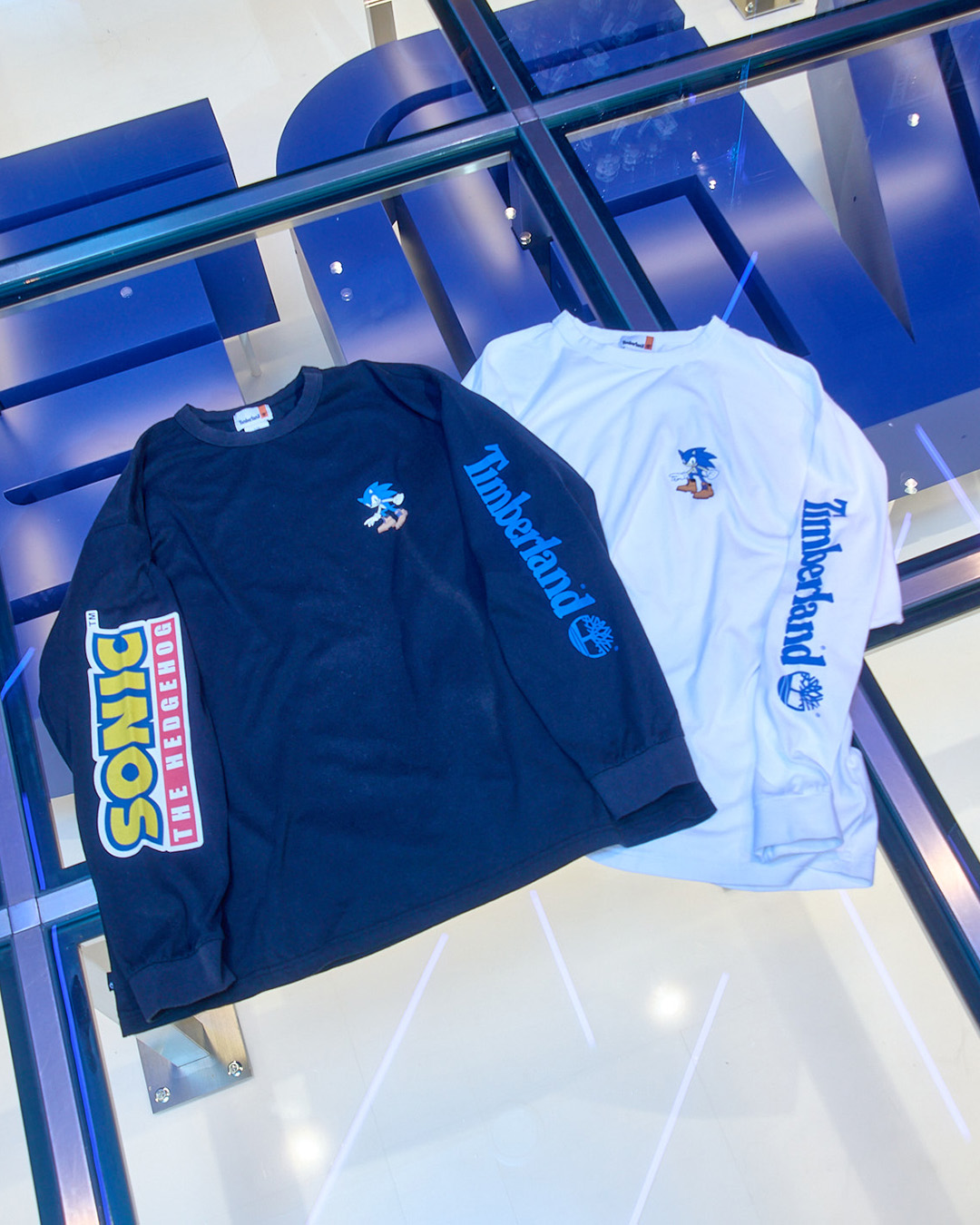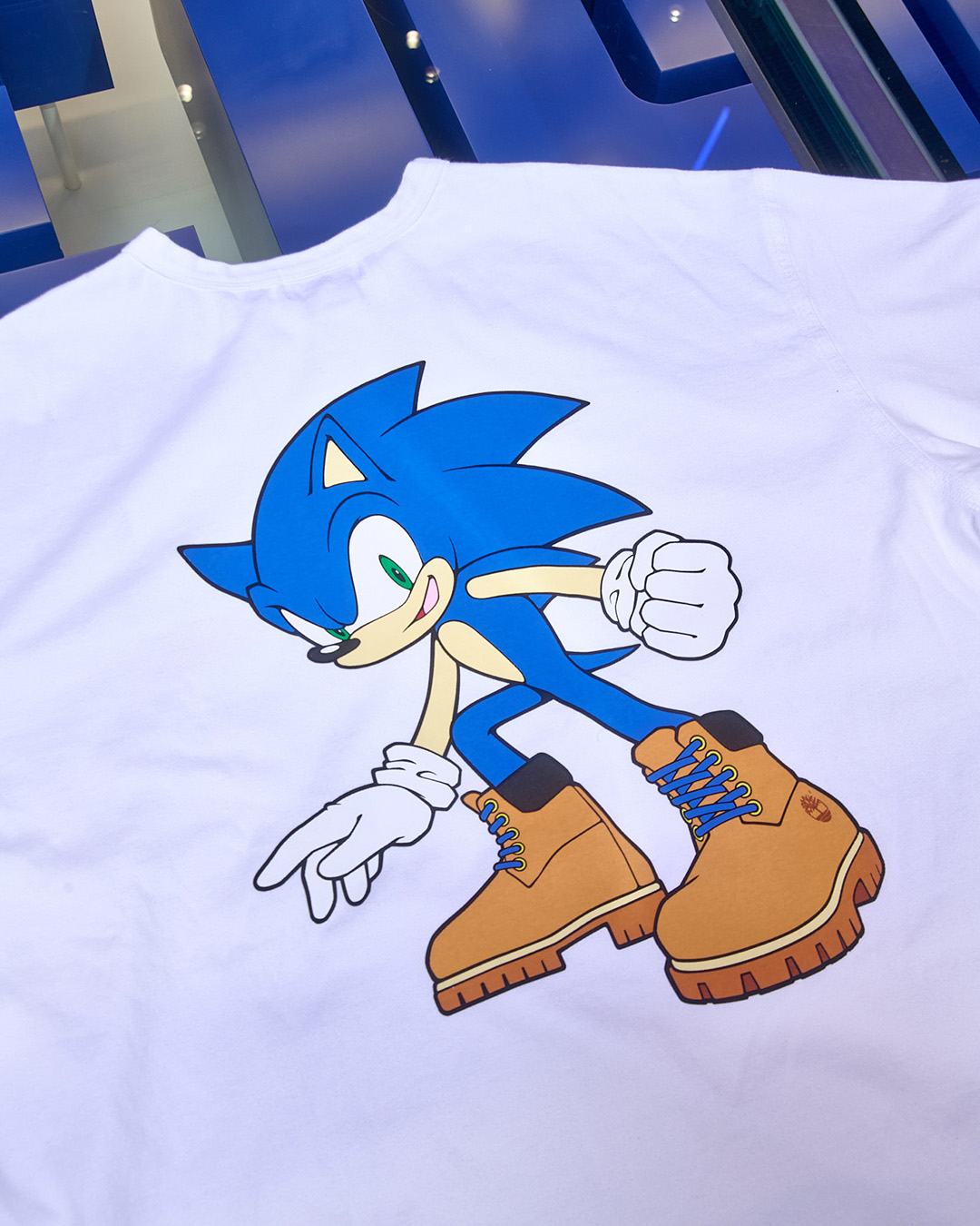 SEGAを象徴する人気キャラクター・ソニックことソニック・ザ・ヘッジホッグがTimberlandのイエローブーツを履いたスペシャルなイラストを製作し、それをTシャツやイエローブーツへと落とし込んでいる。