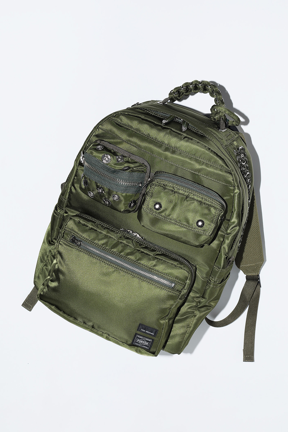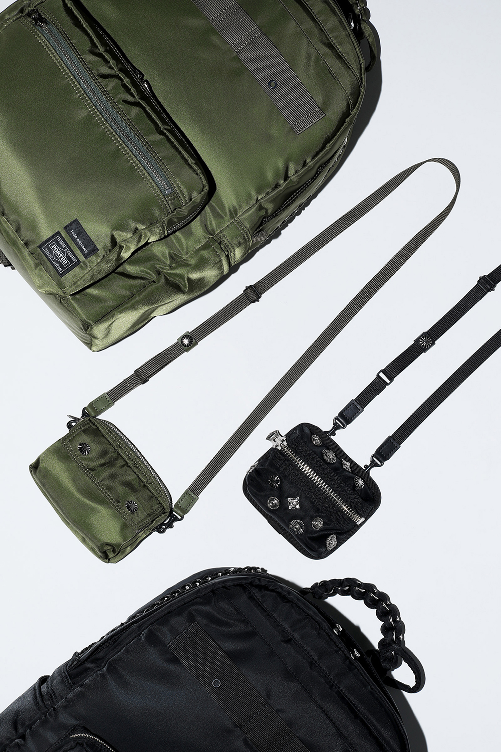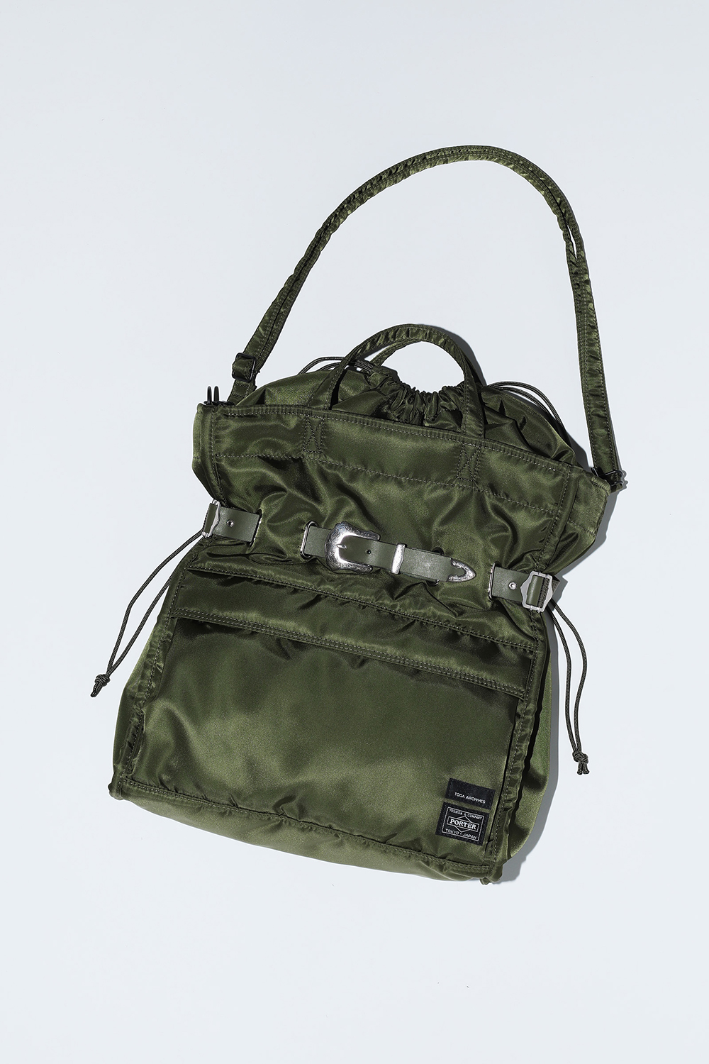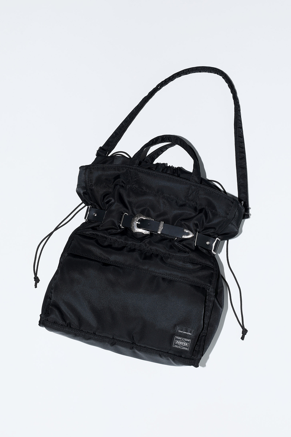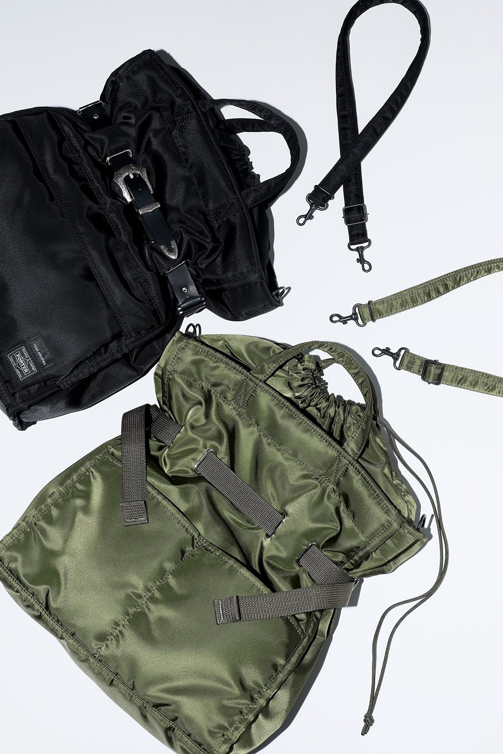 高い機能性と実用性を備えたPORTERの技術に加え、ナイロン素材を編み込んだブレードハンドル、取り外しのできるポーチ、フォルムが変わるベルトなど、手作業でのTOGAらしいメタルディティールを全アイテムに組み込んだ、