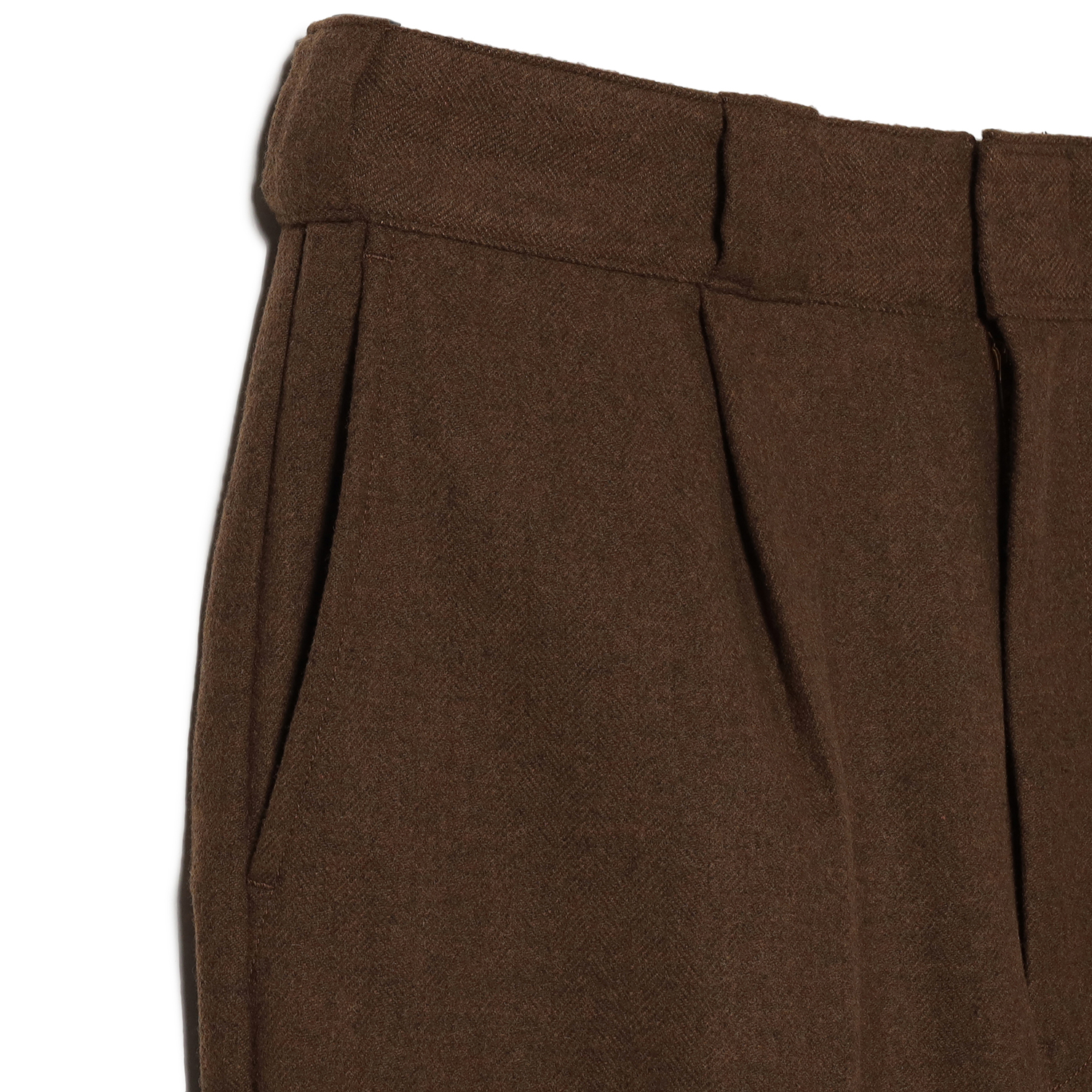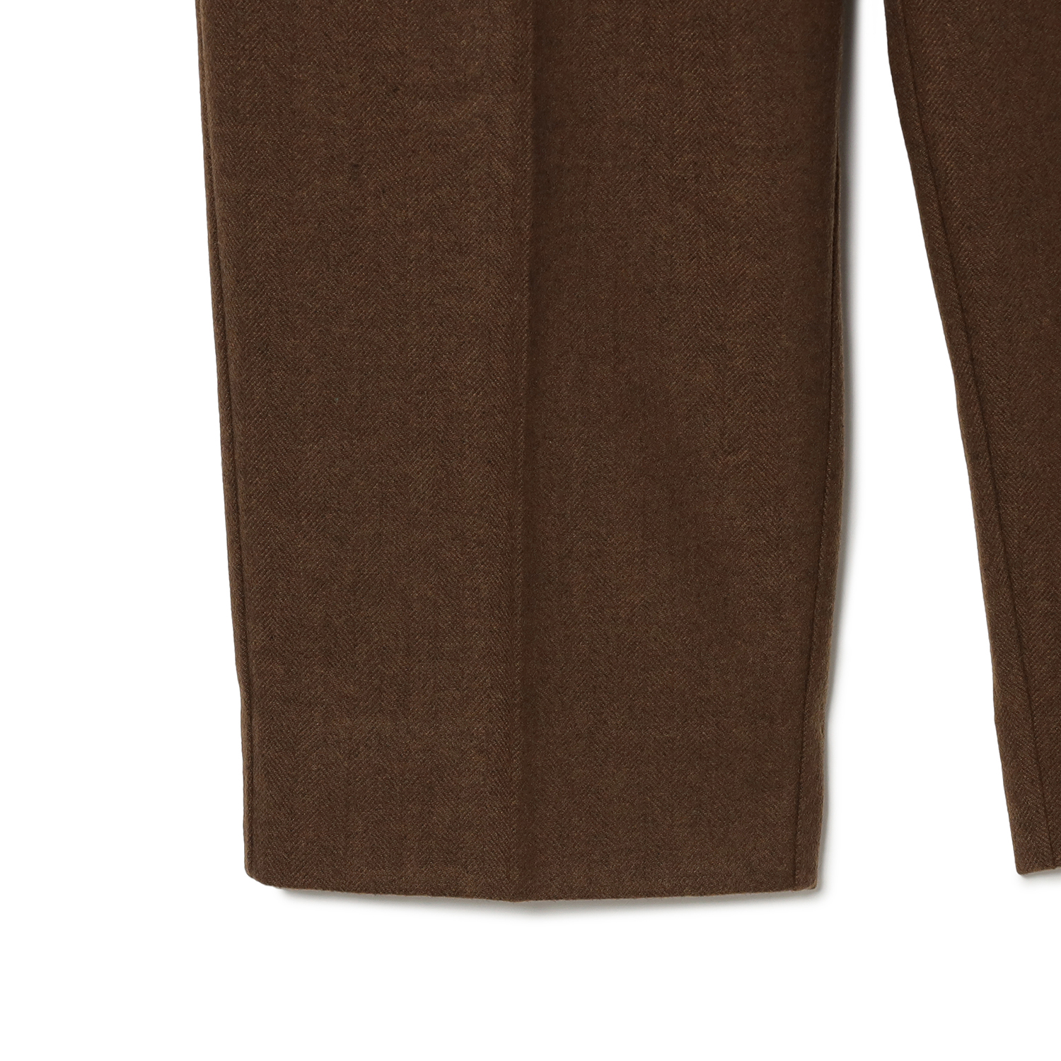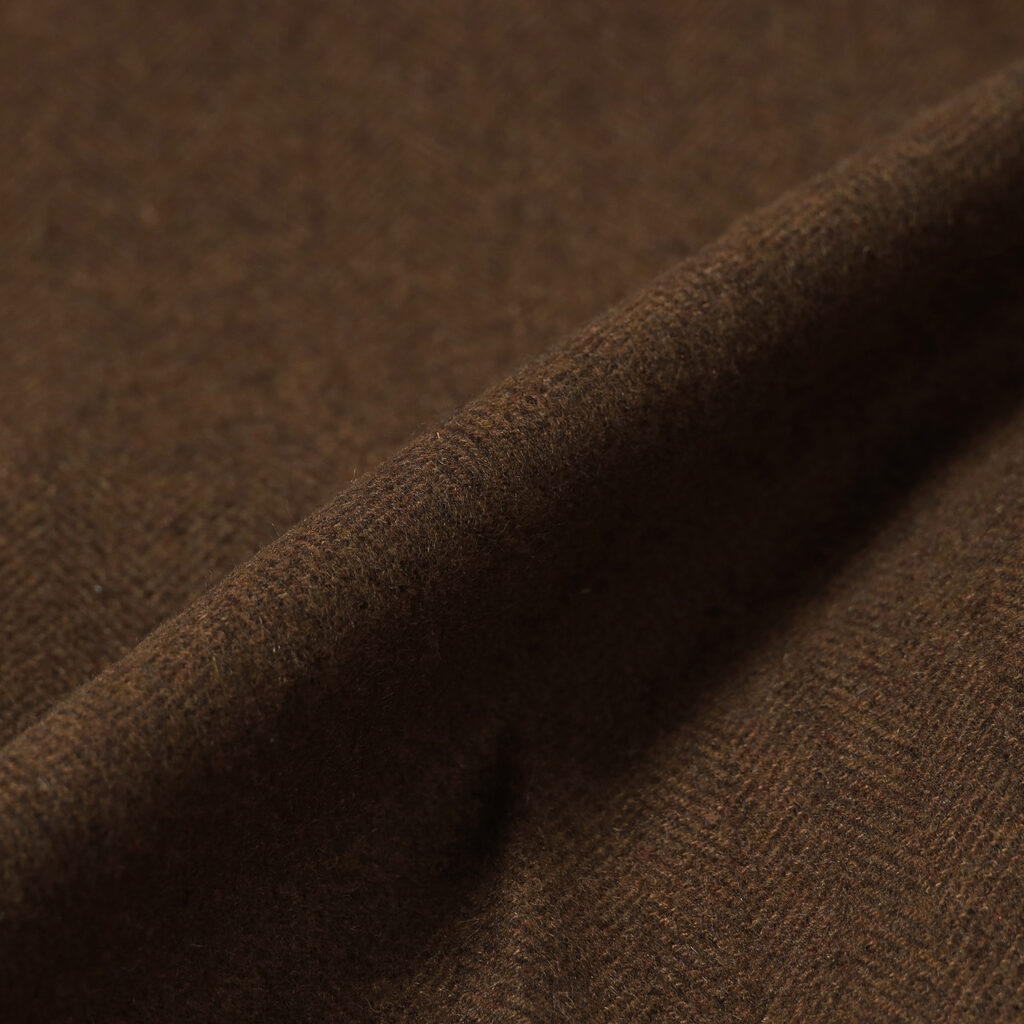 保温性と吸放湿性に優れ、他の生地では見られない柔らかな凹凸や陰影により、上品で洗練された印象を放つ⼀着に仕上がっている。