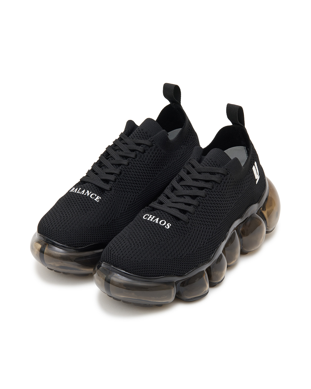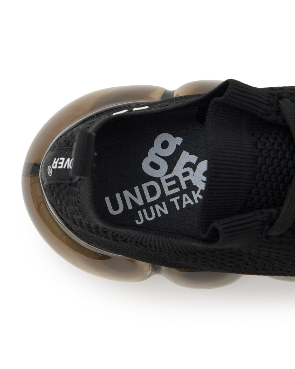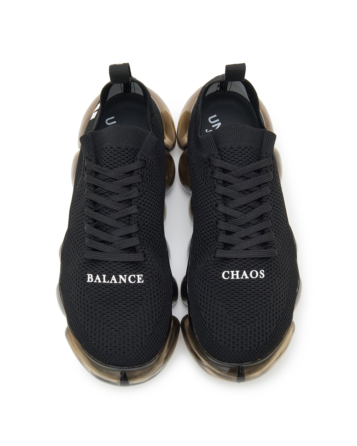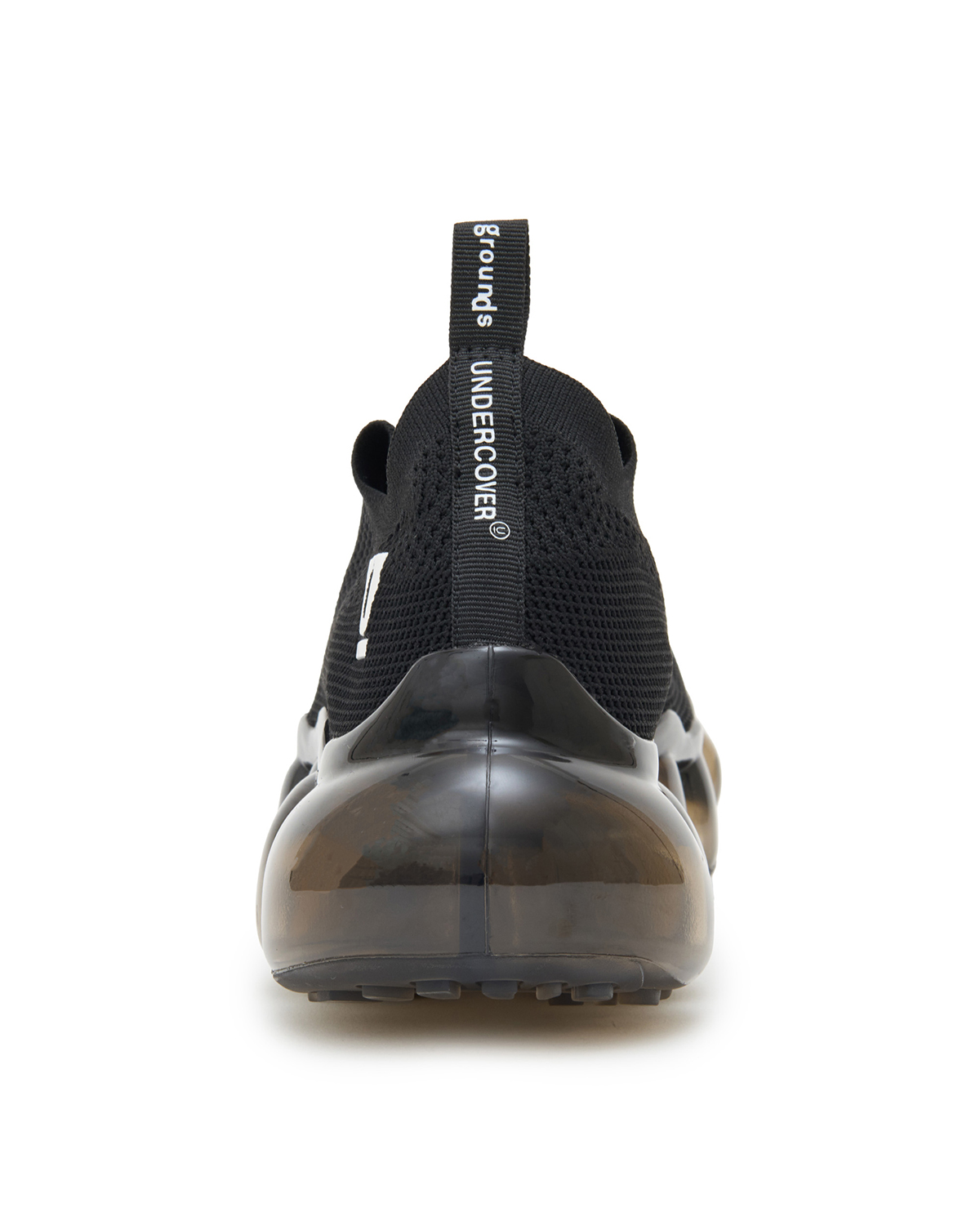アッパーには履き心地の良いニットアッパーを使用しており、左右それぞれの甲部分にUNDERCOVERのモチーフである”CHAOS”と”BALANCE”の文字を配置。かかと部分にはブランドロゴをあしらっている。