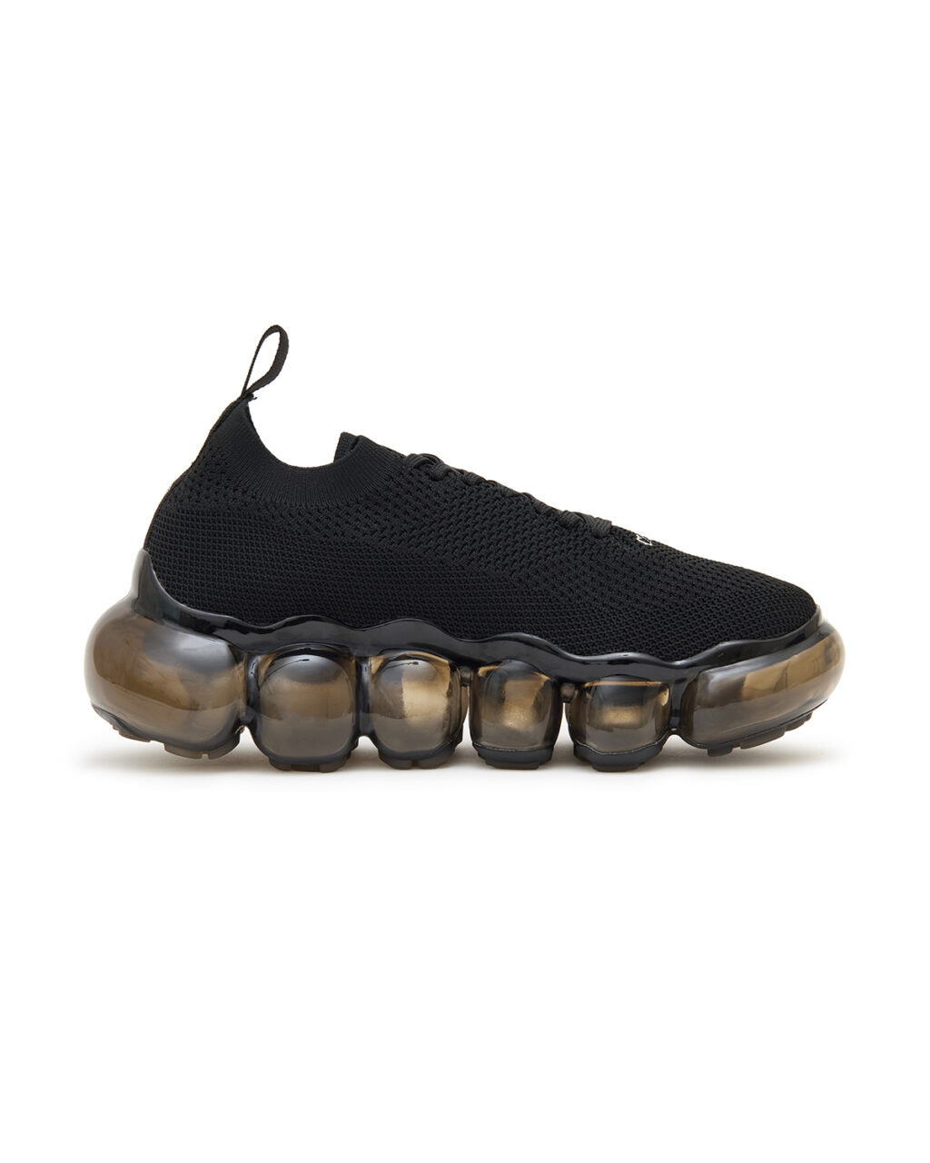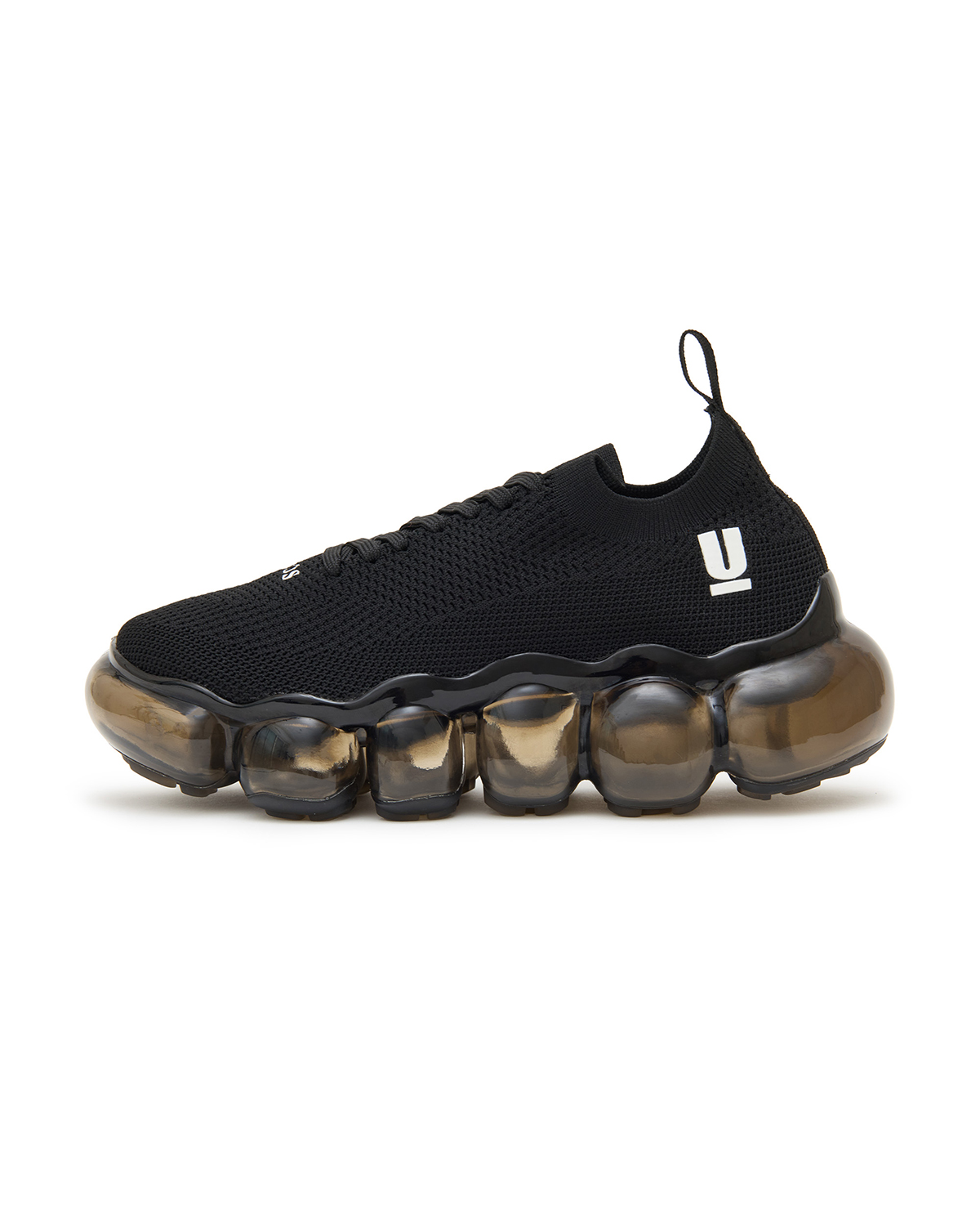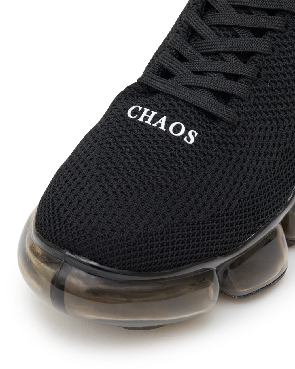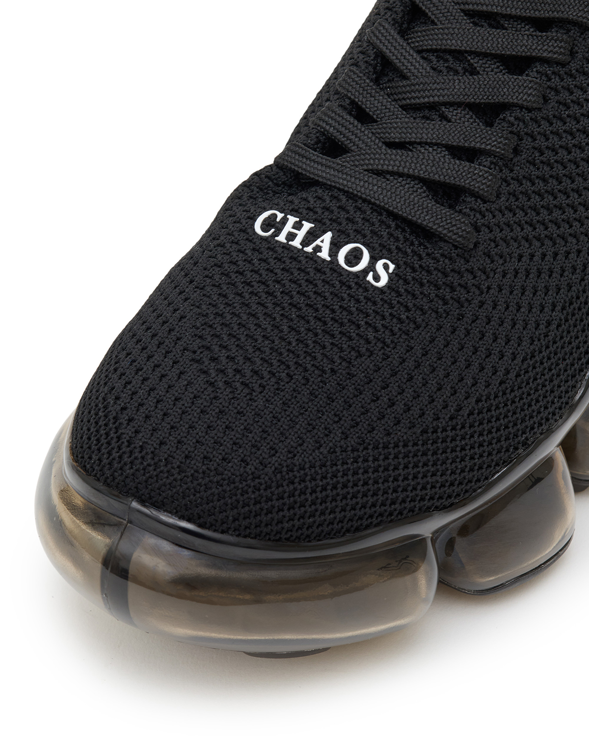 アッパーには履き心地の良いニットアッパーを使用しており、左右それぞれの甲部分にUNDERCOVERのモチーフである”CHAOS”と”BALANCE”の文字を配置。かかと部分にはブランドロゴをあしらっている。
