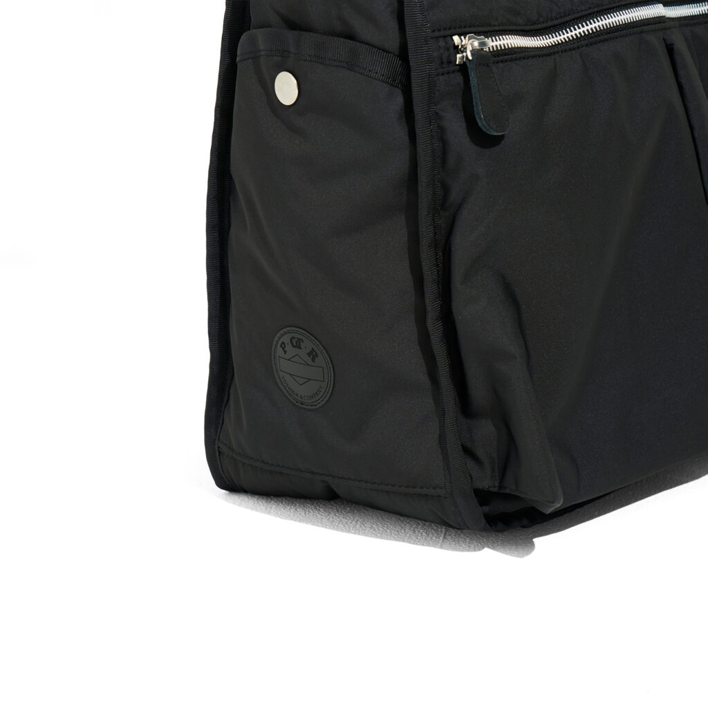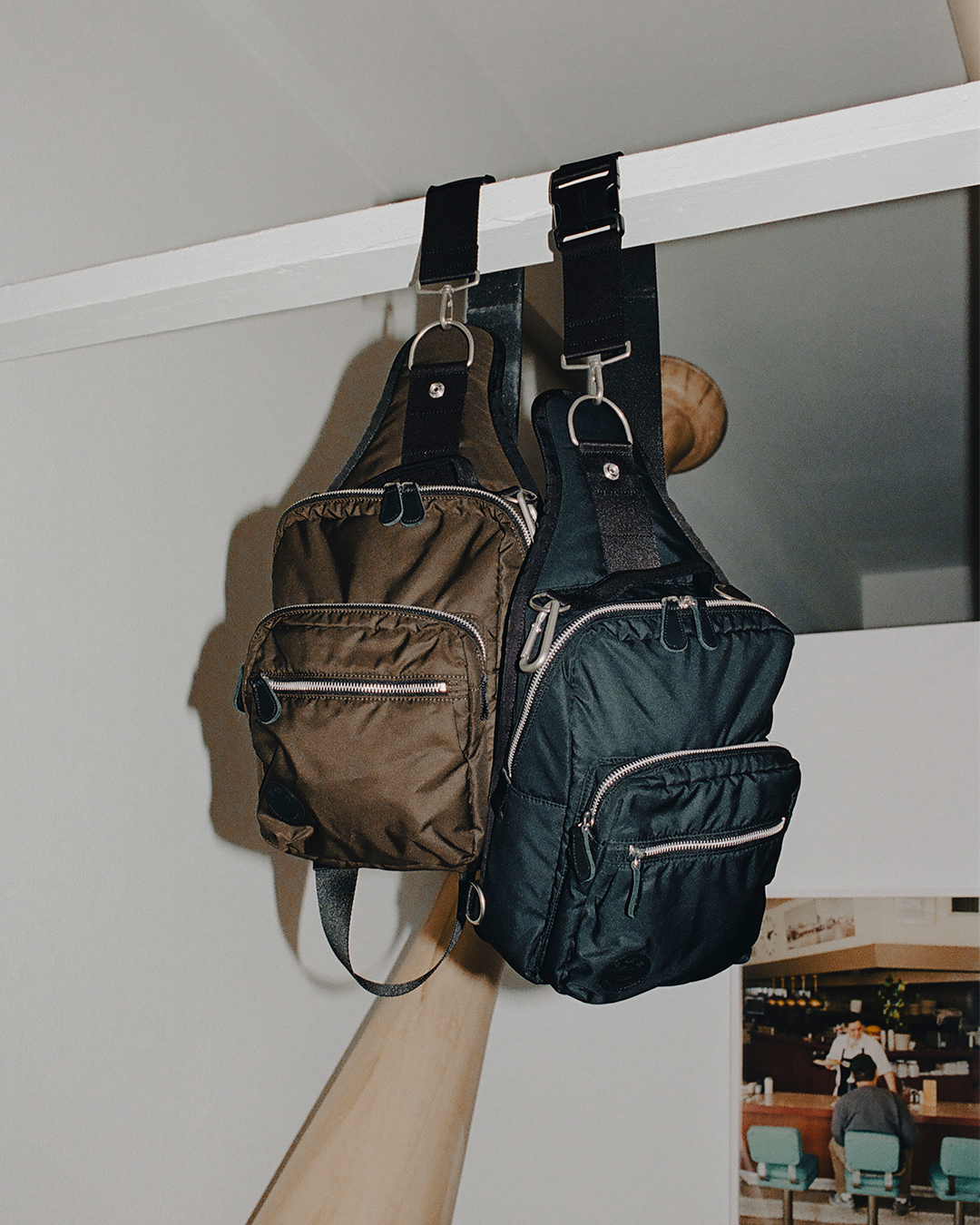 これまで幾度となくコラボレーションを行ってきたVAINL ARCHIVEと吉田カバンだが、今回はポリエステル綿をボンディング加工した生地を使用し、ストラップ付のウォレット、3WAY仕様のスリングショルダーバッグ、ショルダーバッグという3型を製作。