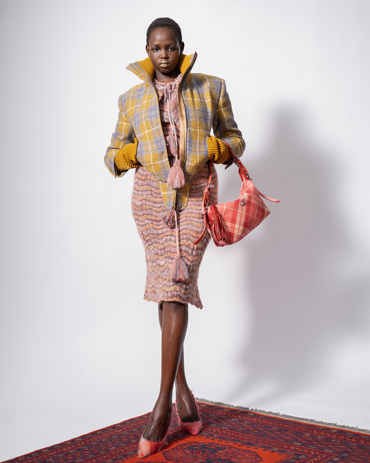 イングランドとその歴史からインスピレーションを受けたコレクションでは、ホルバインによるテューダー朝の肖像画から着想を得たオープンスリーブやコルセット風ニット、ハンティングブリーチズやチェック柄デュロイ、愛らしいツインセットやピクニックブランケットを想起させるテーラリングなどを展開。
