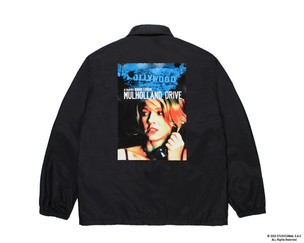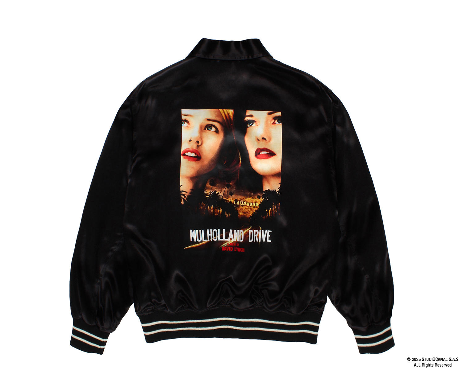 David Lynch(デイヴィッド・リンチ)の代表作の1つとして知られる『マルホランド・ドライブ』だが、今回のコラボレーションでは同作品のアートワークやポスターをコラージュした総柄のハワイアンシャツのほか、スーベニアジャケット、コーチジャケット、フーディー、スウェットシャツ、Tシャツ、キャップが登場。