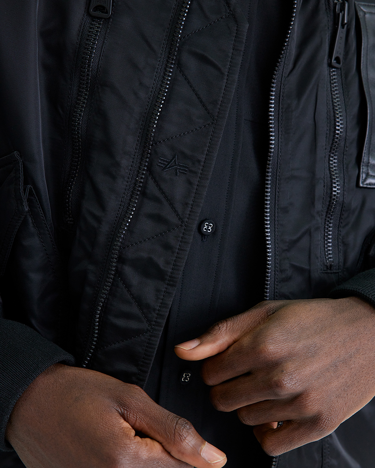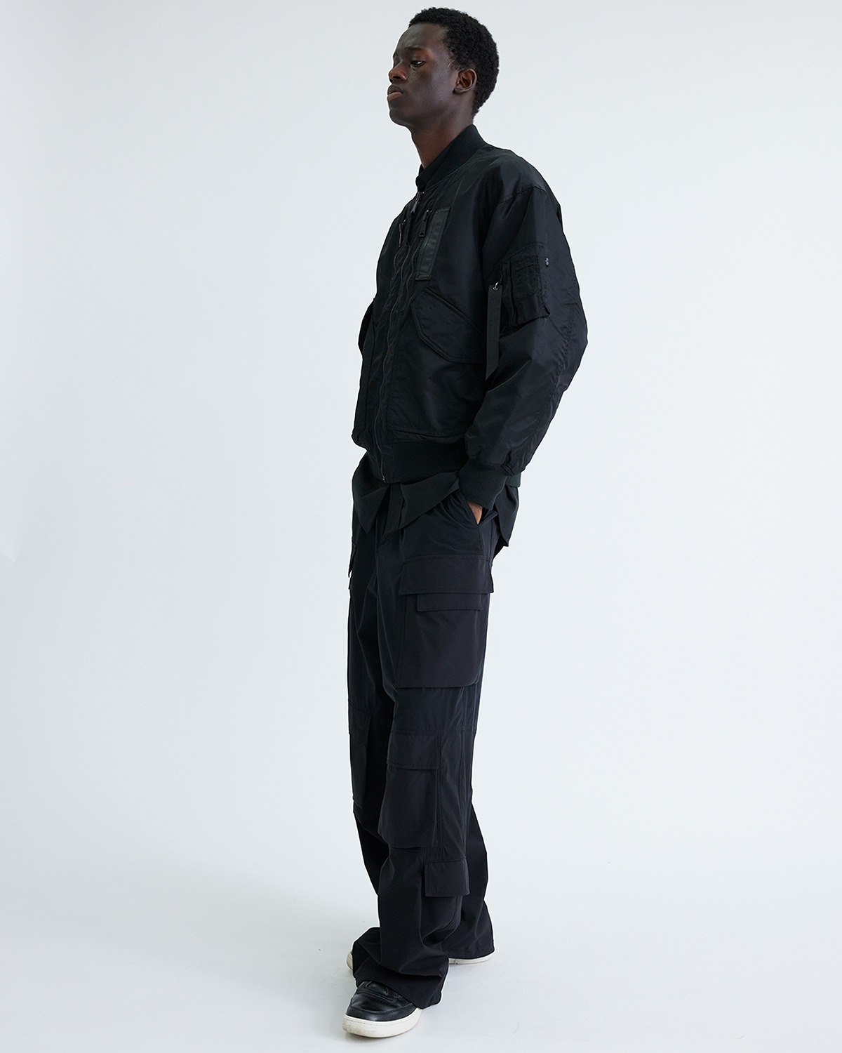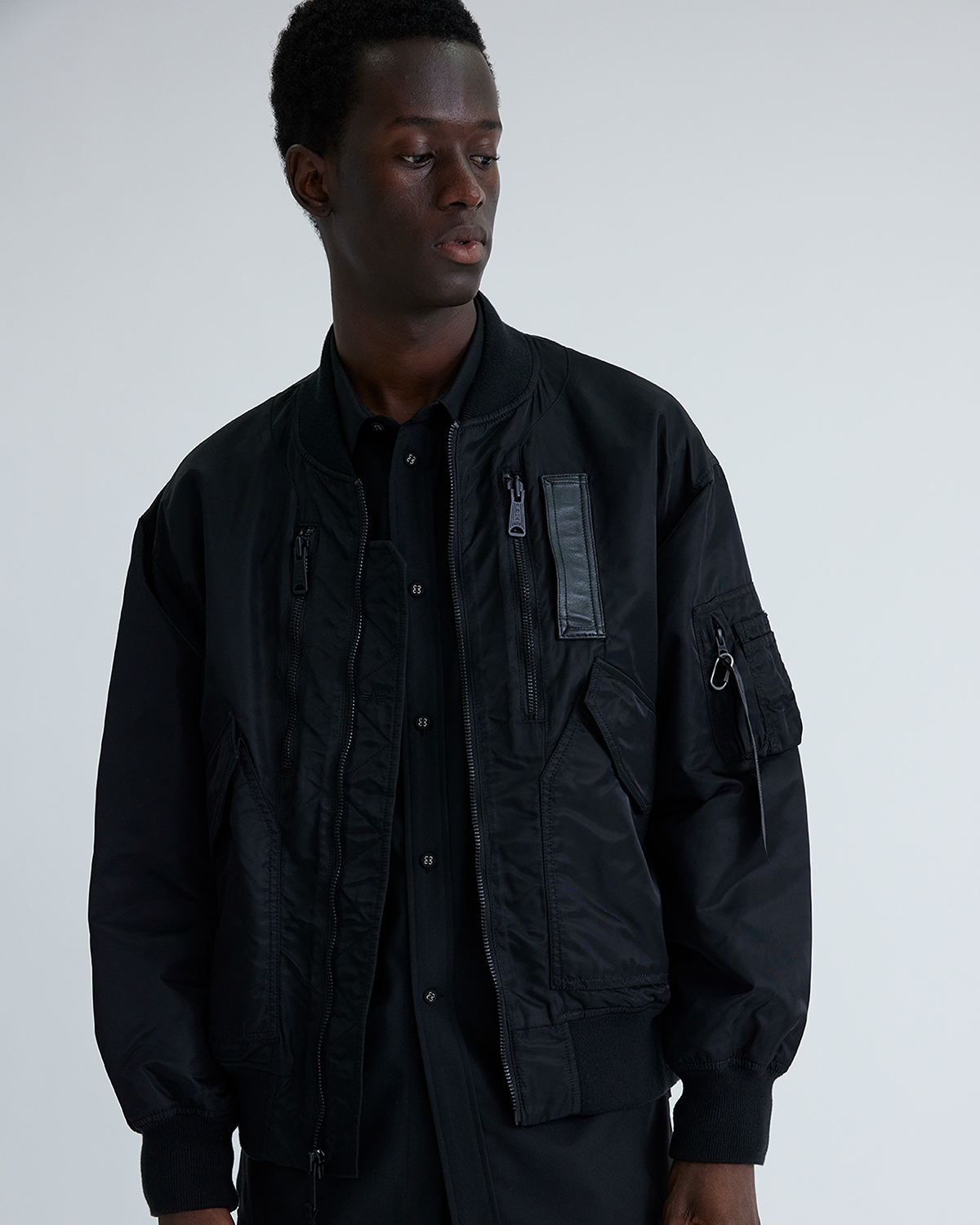 この両者にとって初のタッグとなる今回は、CWU-45/Pフライトジャケットをベースとしつつも、MA-1のディテールを取り入れ、 White Mountaineeringらしいパターンメイキングでシルエットを再構築。