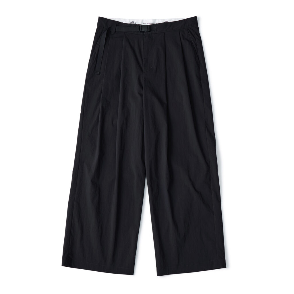 テーパードパンツ、2 タックワイドパンツ、ワイドショートパンツという3型のボトムスに加え、ボトムスと同素材を使用したブルゾンとワークシャツもWhite Mountaineeringの直営店およびオンラインストアの限定アイテムとして登場する。