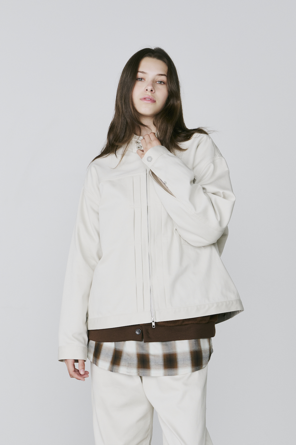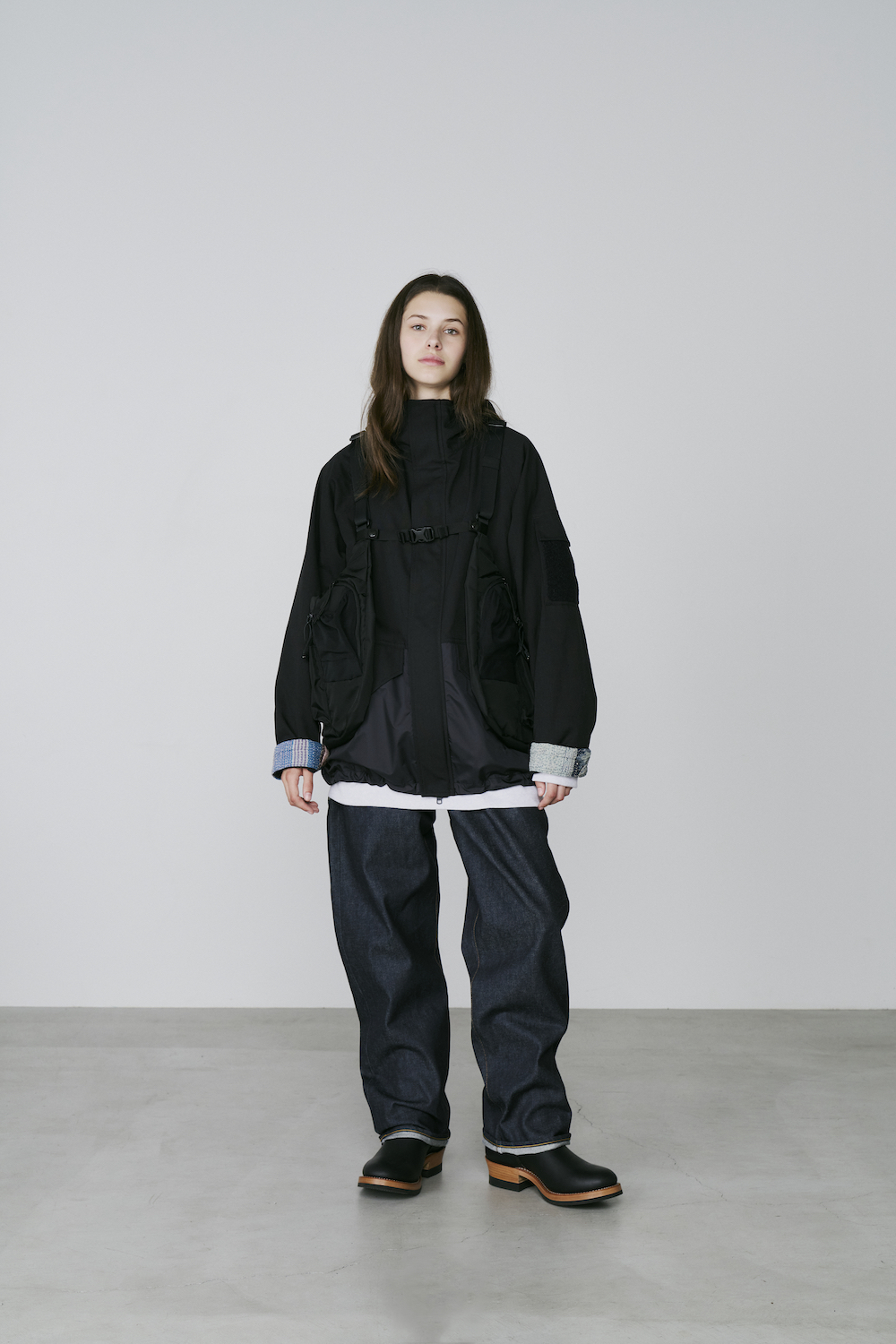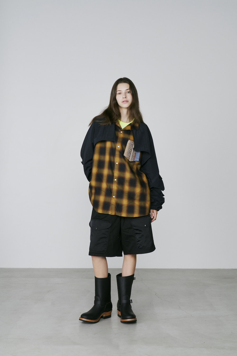 デザイナー自身が30年以上にわたり買い集め、今は袖を通さなくなった古着たちと向き合うことからスタートしたという、今季のコレクション。過去と現在が交差することで生まれた、今のWHIZLIMITEDを象徴するプロダクトを展開する。