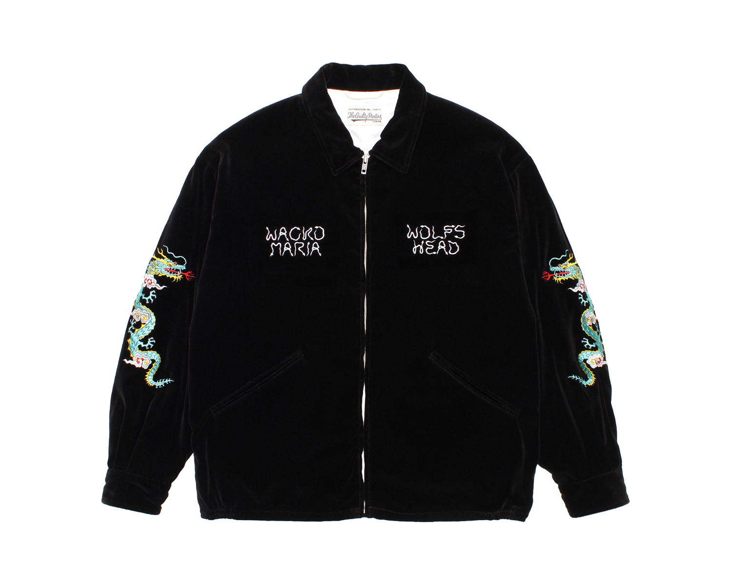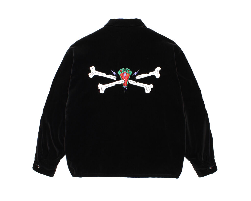 各アイテムには、WOLF’S HEADの幹田卓司が描いたグラフィックがバック、袖部分に刺繍で忠実に表現されている。