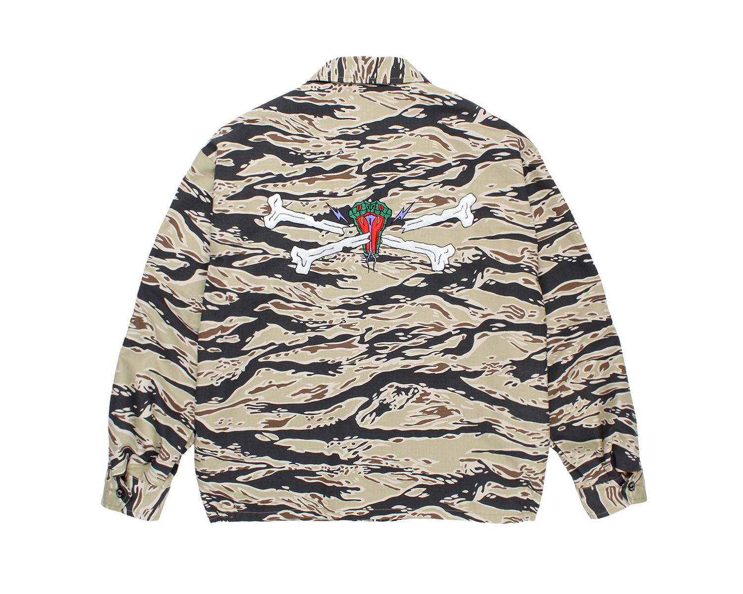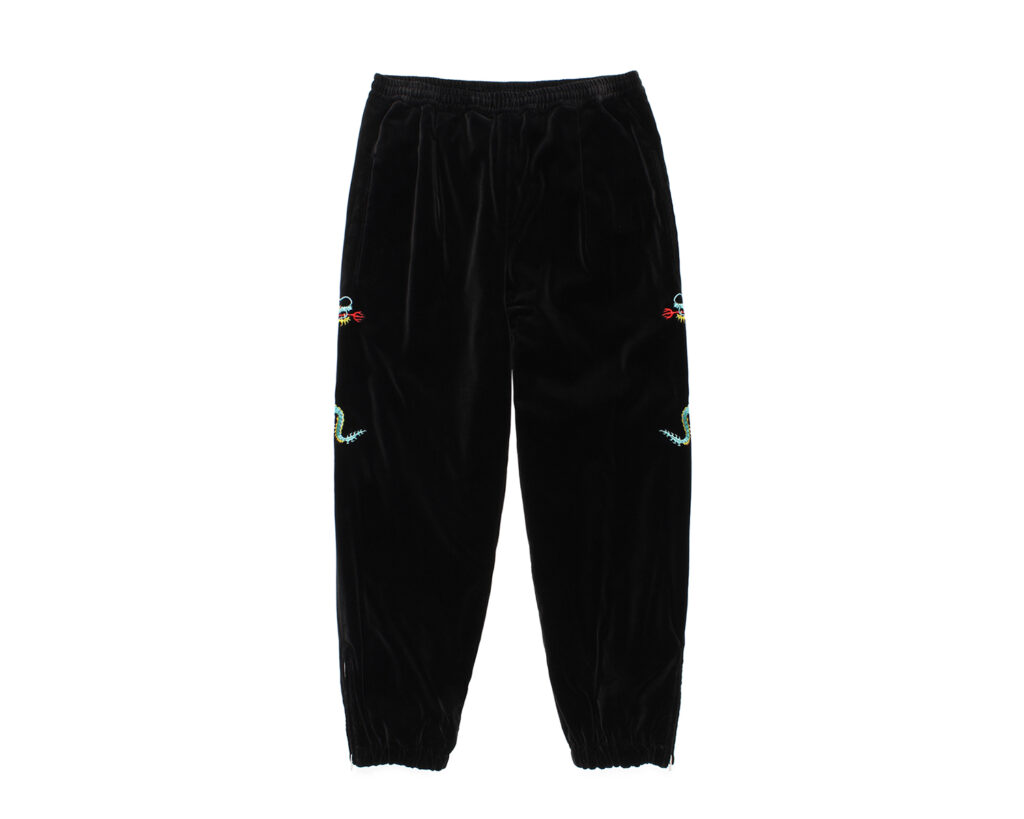 今回は、WACKO MARIAオリジナルのタイガーカモ柄の生地を使用したベトナムジャケット、新型のベトナムパンツ、レーヨンサテン地のスカジャケット、新型のスカパンツを製作。