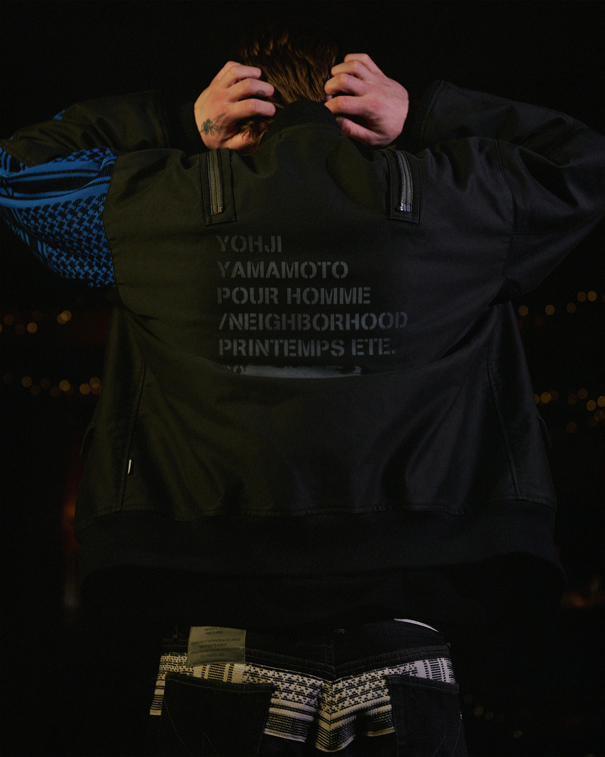 今季は、NEIGHBORHOODの持つカルチャーやバックボーンを、Yohji Yamamoto POUR HOMMEが掲げるアンチテーゼや反骨精神に融合。