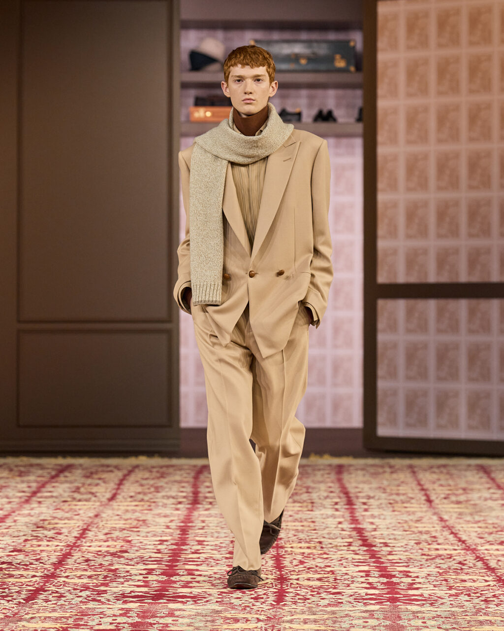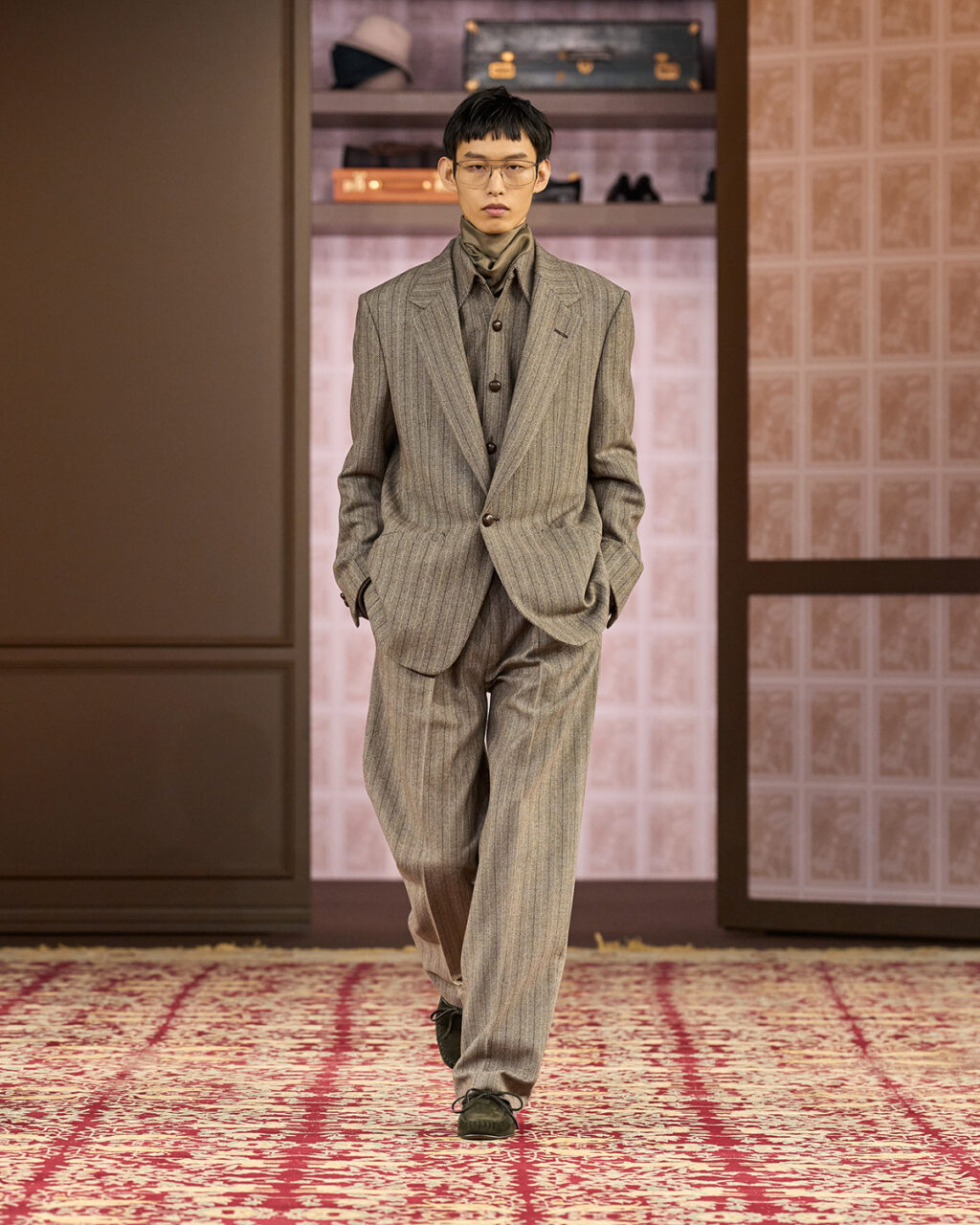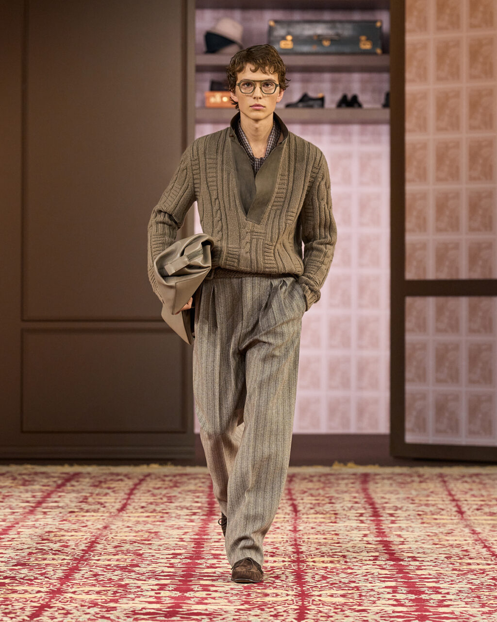 ”A FAMILY CLOSET”というシーズンタイトルを掲げた今季のコレクションは、ジルド・ゼニアとパオロ・ゼニアという、創業家3代目にあたる2人の私物や、先祖から受け継がれてきた衣服といった実在するアイテムで満たされた、架空のクローゼットを舞台に展開。