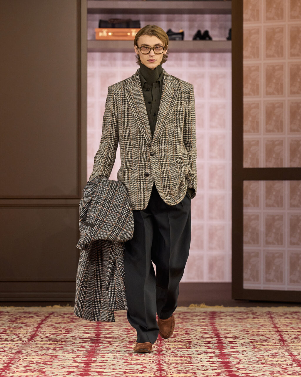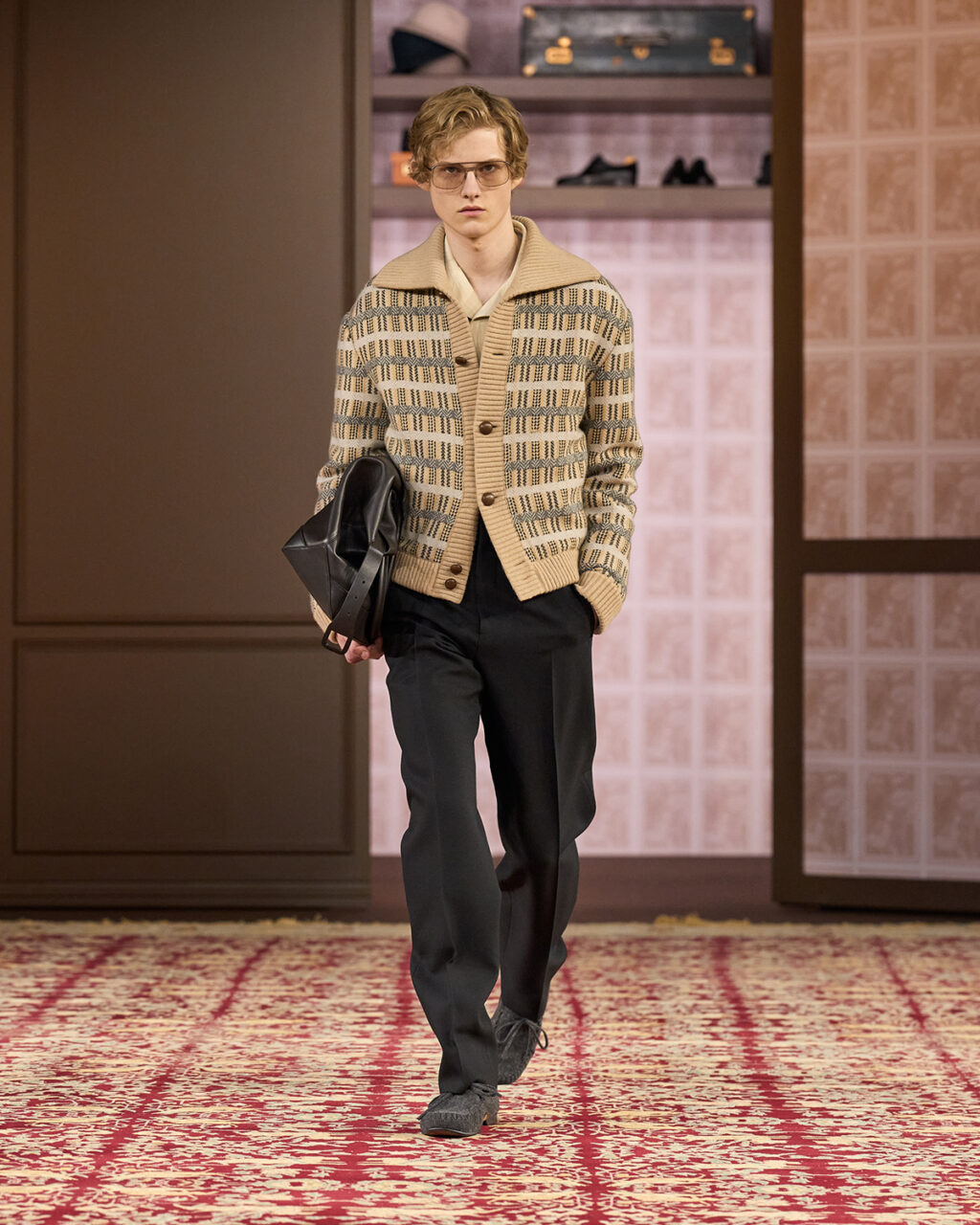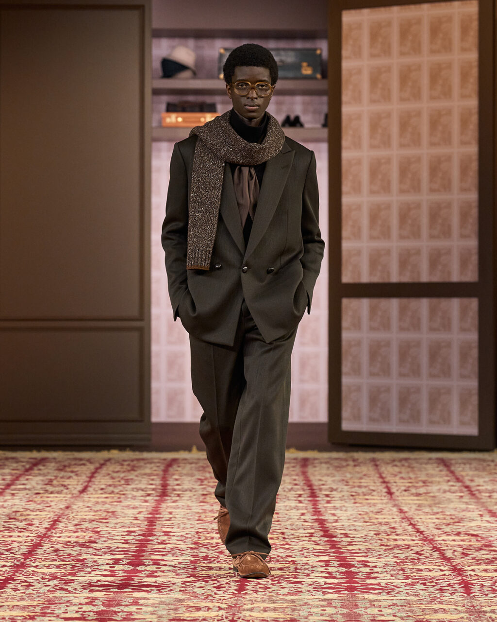 ”A FAMILY CLOSET”というシーズンタイトルを掲げた今季のコレクションは、ジルド・ゼニアとパオロ・ゼニアという、創業家3代目にあたる2人の私物や、先祖から受け継がれてきた衣服といった実在するアイテムで満たされた、架空のクローゼットを舞台に展開。