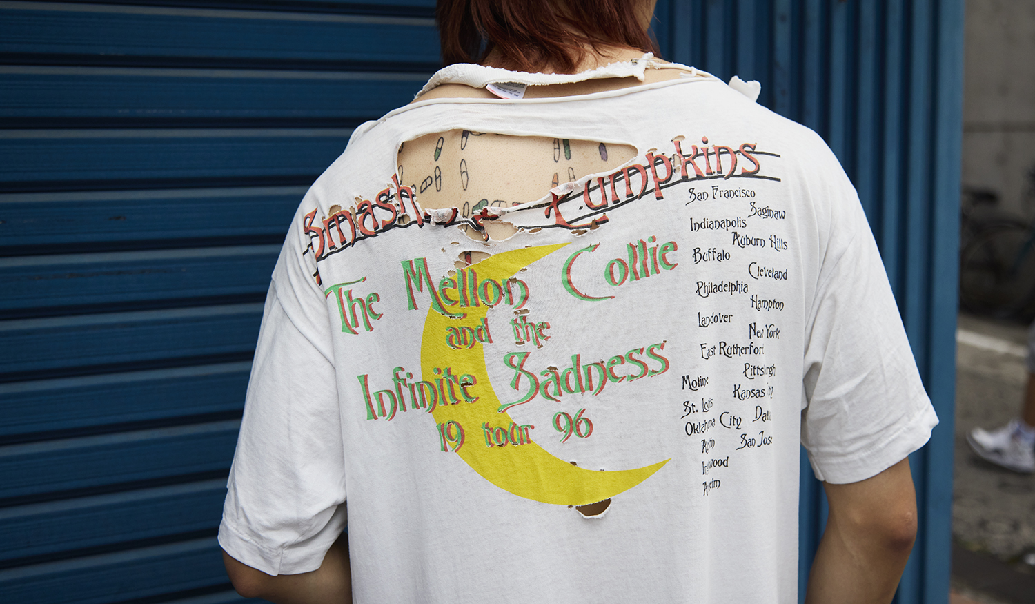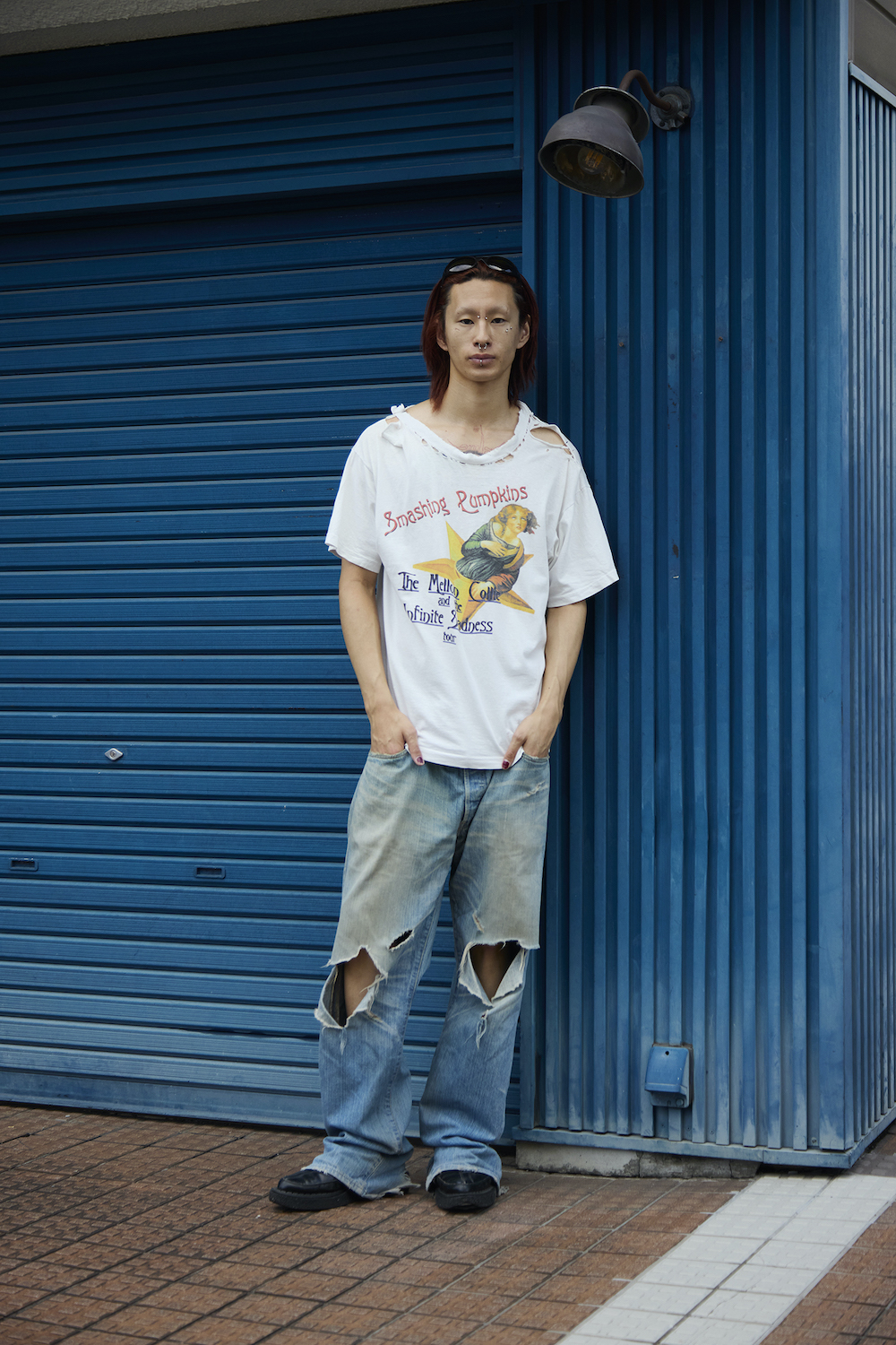4日目となる木曜日は、The Smashing PumpkinsのTシャツ、Levi’s®(リーバイス®)のパンツ、COMME des GARÇONS HOMME PLUS(コム デ ギャルソン・オム プリュス) × GEORGE COX(ジョージ コックス)のシューズなどをコーディネート。