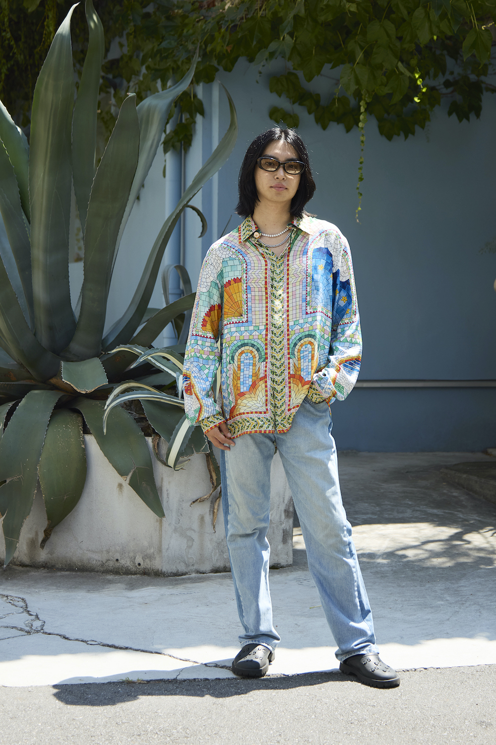 Top:Casablanca Bottom:BLESS Shoes:GUCCI Eyewear:Zoff|GDC