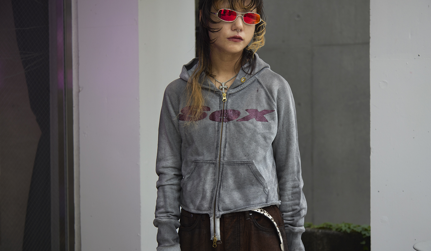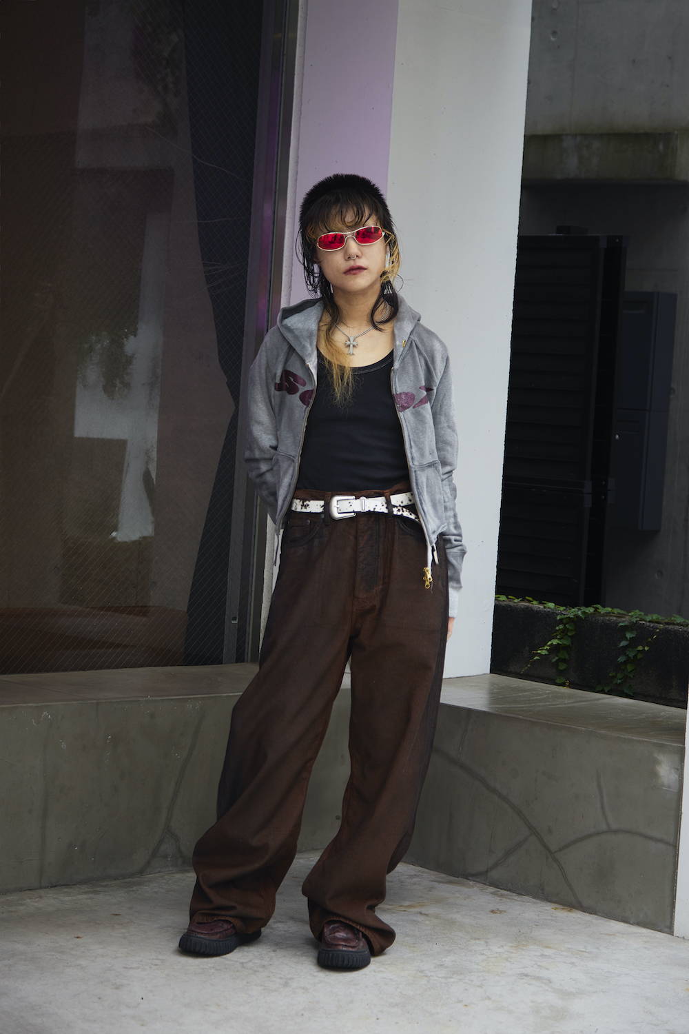 Top:SEX Inner:Ksubi Bottom:NOMAINTENANCE Shoes:Martine Rose for Clarks Eyeware:NOMAINTENANCE Belt : MOLEBO