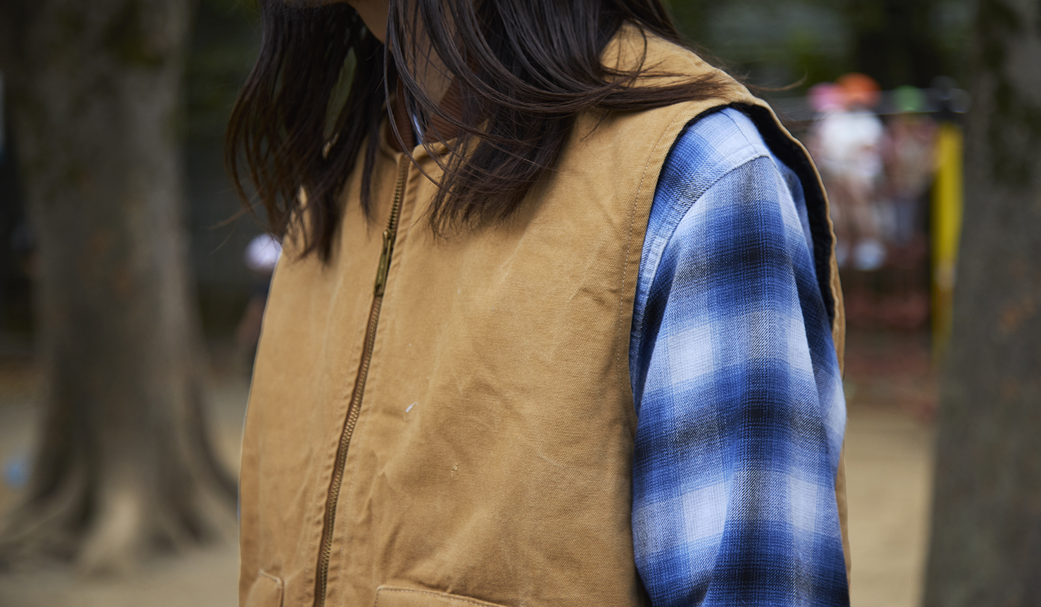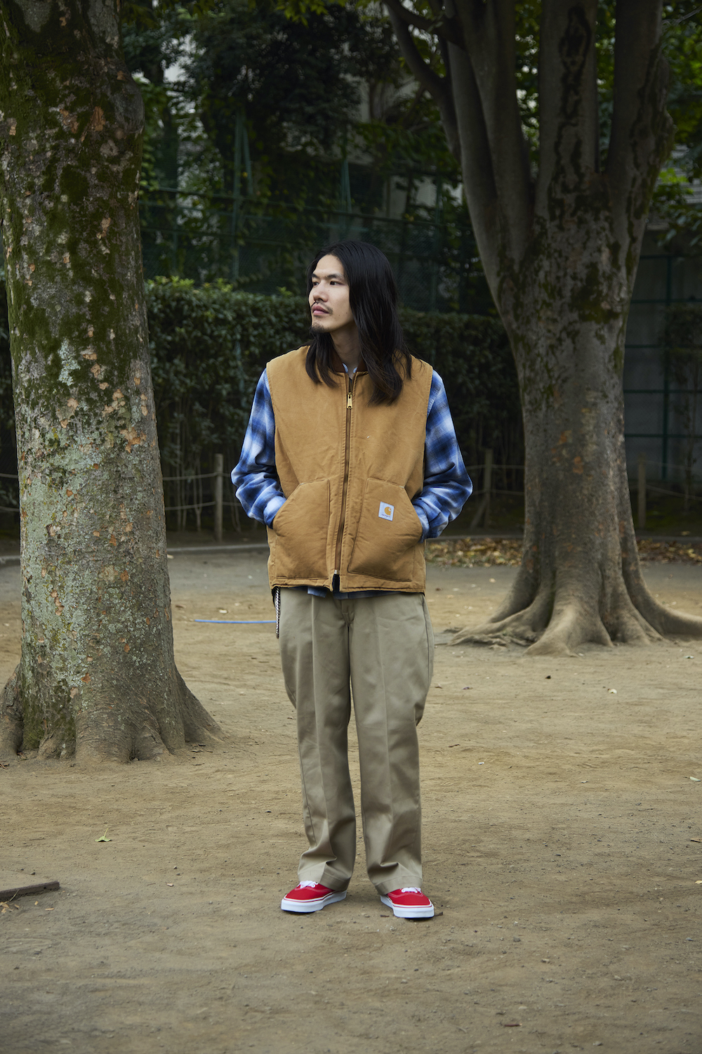 4日目となる木曜日は、古着のベスト、JOURNAL STANDARD relumeのシャツ、VANS(ヴァンズ)のシューズなどをコーディネート。