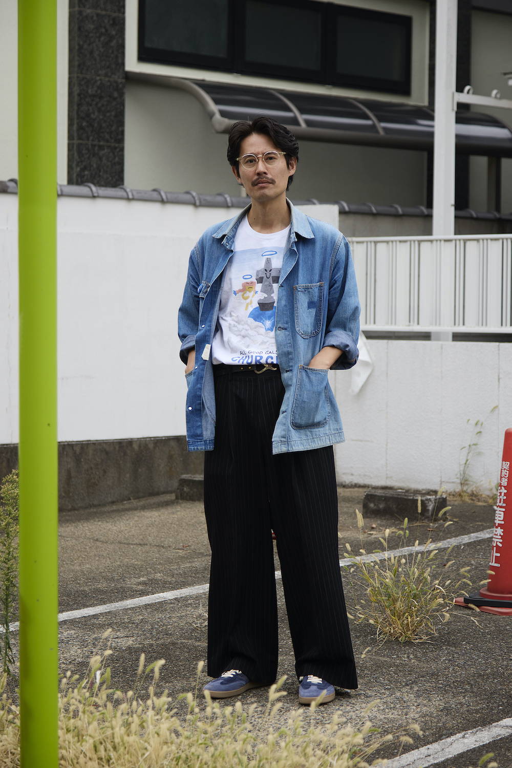 Top:Vintage Inner:TOMASON Bottom:ALONE Shoes:Collegium × rag & bone Eyeware:MOSCOT Belt:Vintage