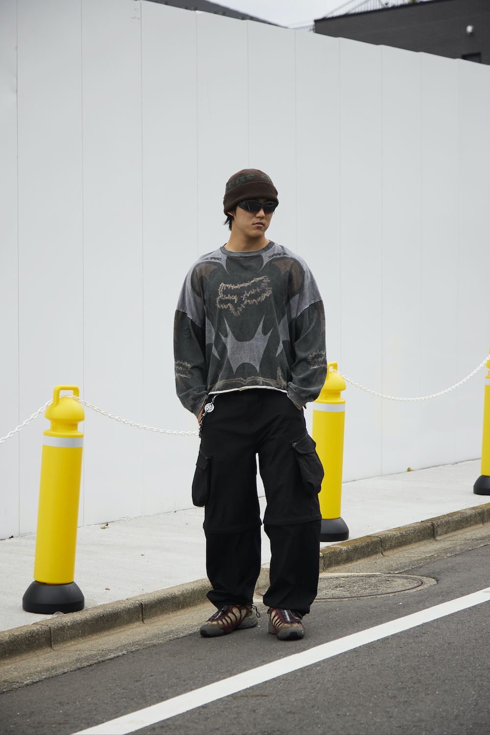 Top:Fox Racing × Cactus Jack Beanie:XLARGE® Bottom:SAN SAN GEAR Shoes:OAKLEY × Brain Dead Eyeware:OAKLEY Wallet Chain:WestRide