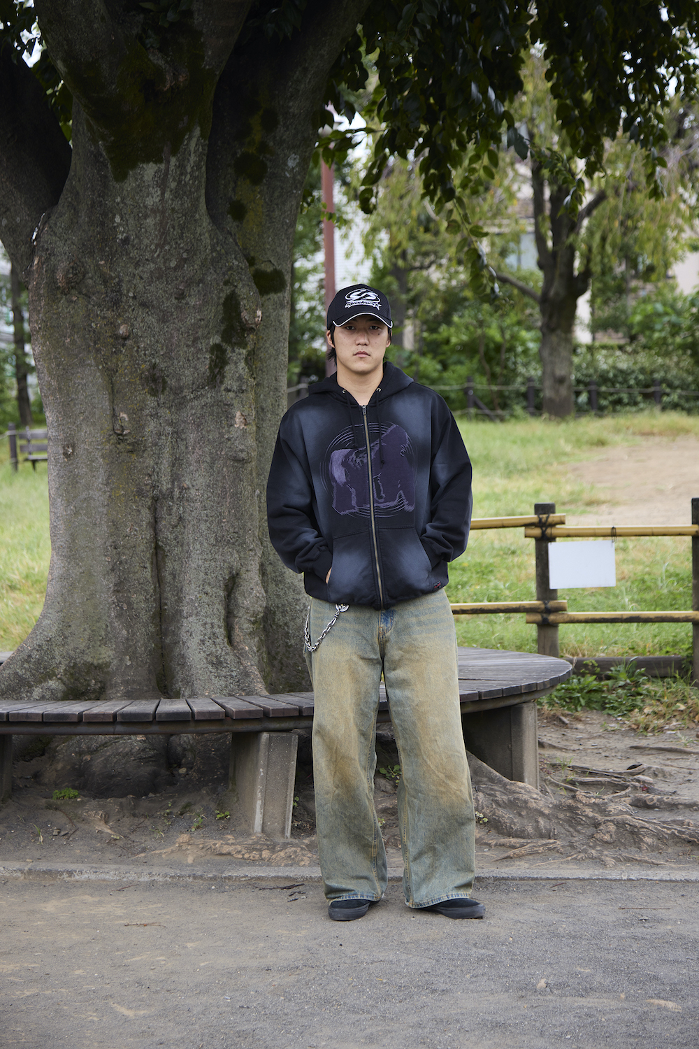 Cap:MNSKWS × Asuma Top:XLARGE® Bottom:XLARGE® Shoes:VANS Wallet Chain:WestRide