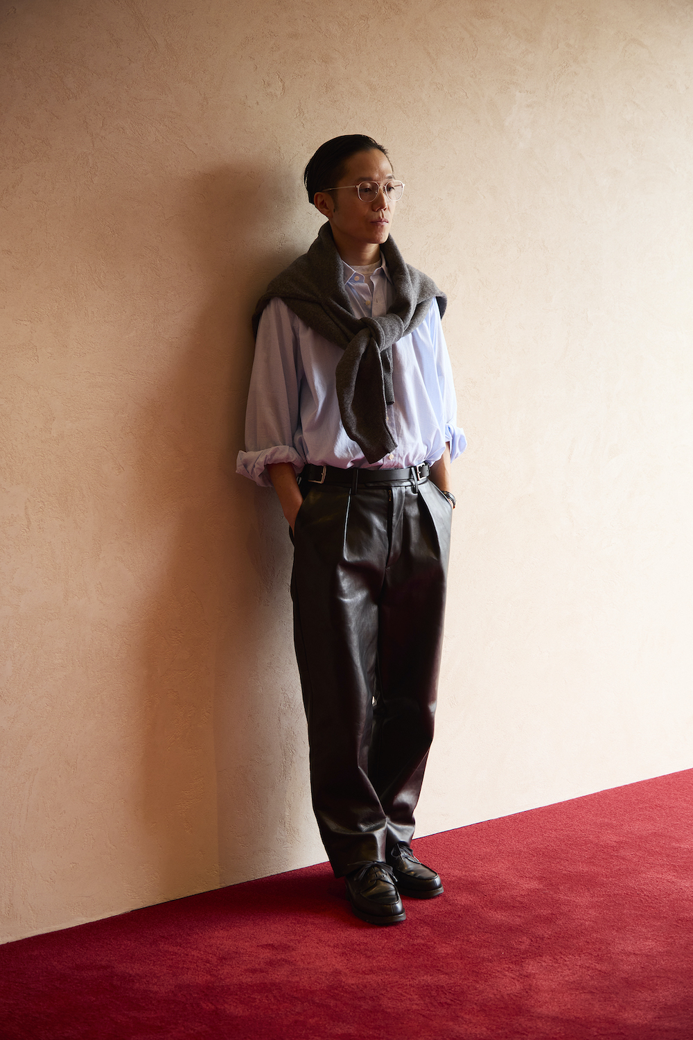 3日目となる水曜日は、NICENESSのシャツ、GLENMAC(グレンマック)のニット、J.M. WESTON(ジェイエムウエストン)のシューズなどをコーディネート。