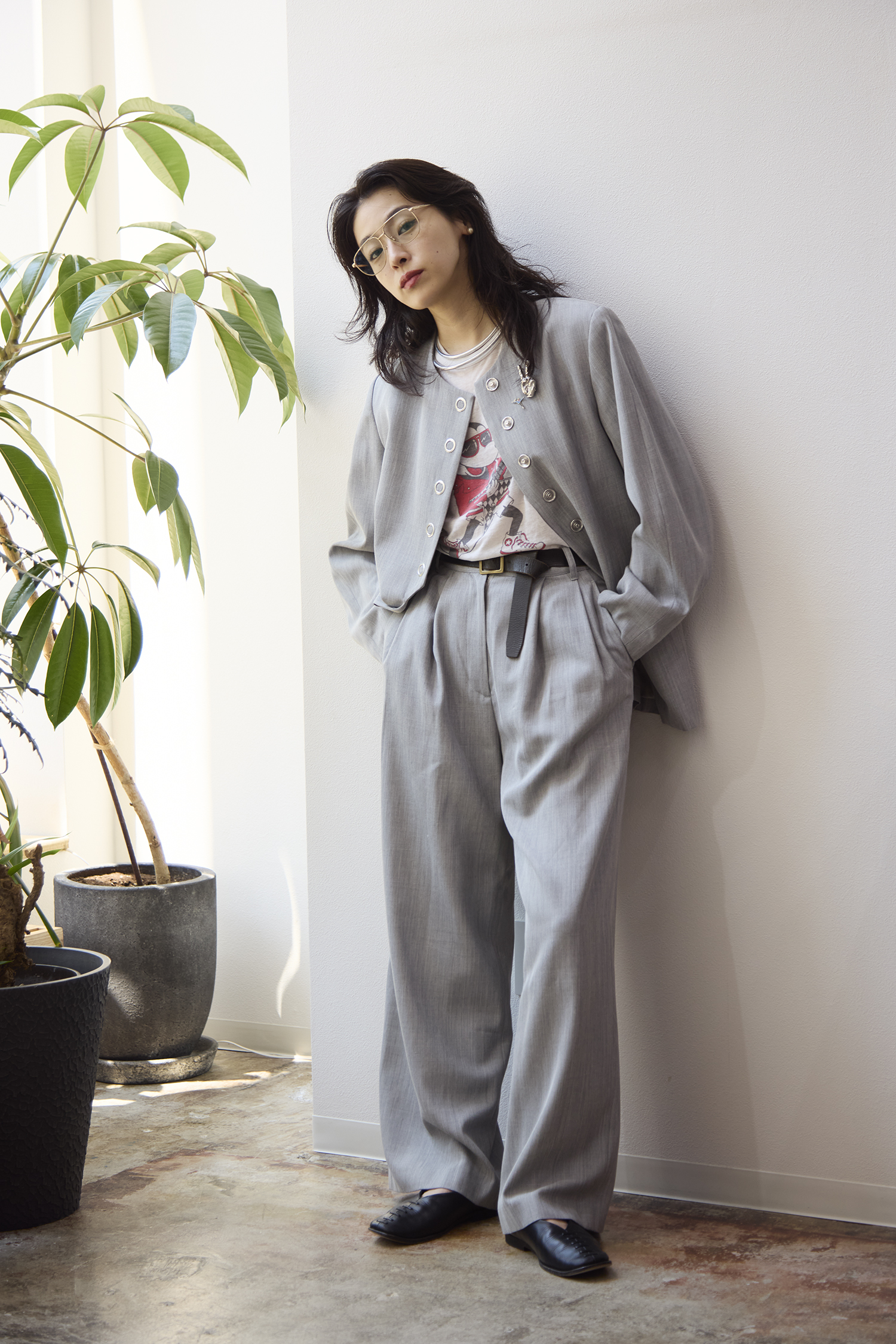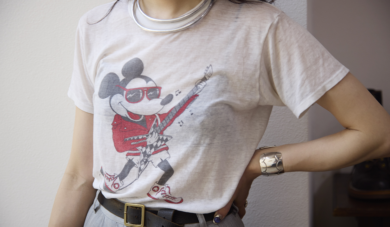 Top:70s Rock Mickey Tee Jacket:RUMBLE RED Bottom:RUMBLE RED Shoes:LA POCHE Eyewear:CELINE
