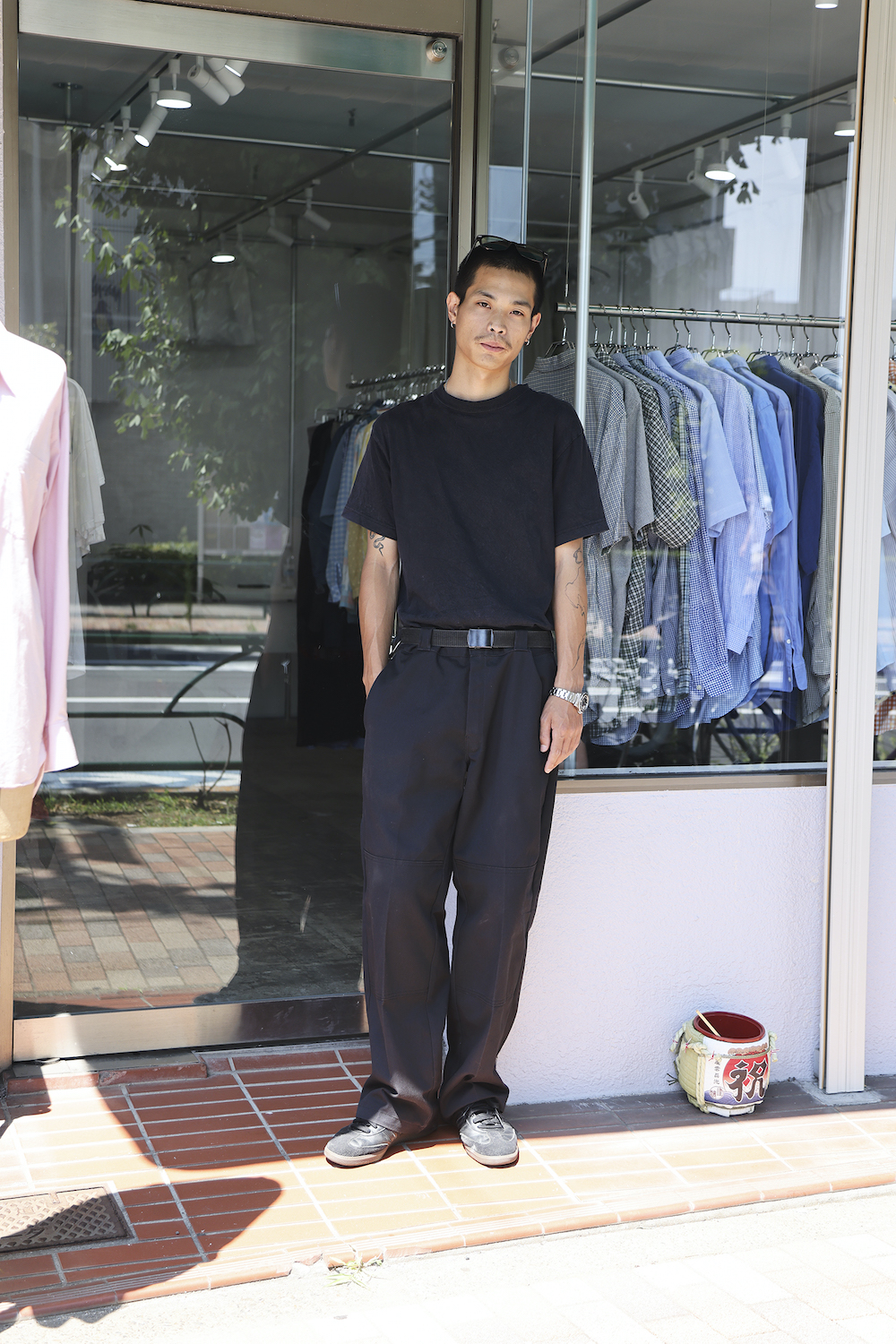 Top:Hanes Bottom:Dickies Shoes:adidas Eyewear:No brand Watch:Rolex