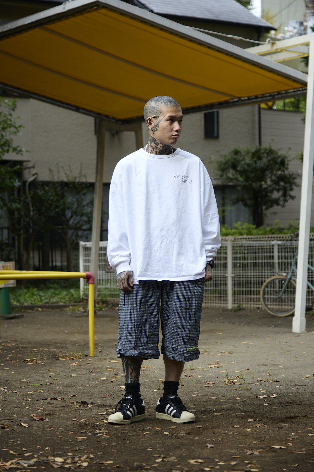 2日目となる火曜日は、Teen Boop(ティーンブープ)のTシャツ、Sell the souls(セルザソウルズ)のパンツ、adidas(アディダス)のシューズなどをコーディネート。