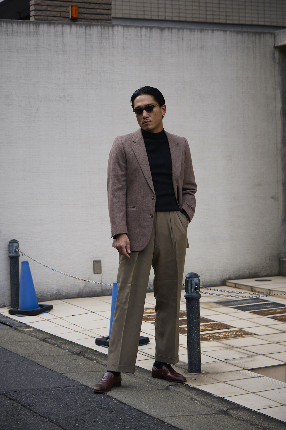 Top:70’s Yves Saint Laurent Inner:40’s US Navy sweater Bottom:50s American vintage Shoes:80’s Italian vintage Eyeware:60’s American vintage