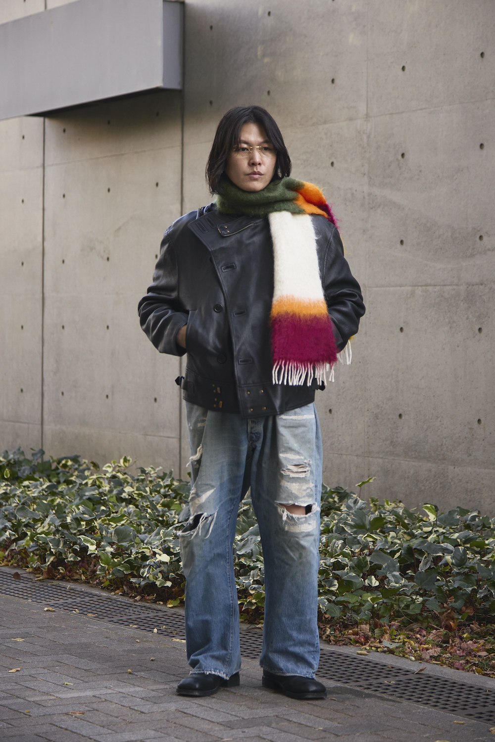 Top:LOEWE Inner:JOHN SMEDLEY Bottom:Levi’s®︎ bigE Shoes:GUIDI Eyeware:Cartier accessory:LOEWE