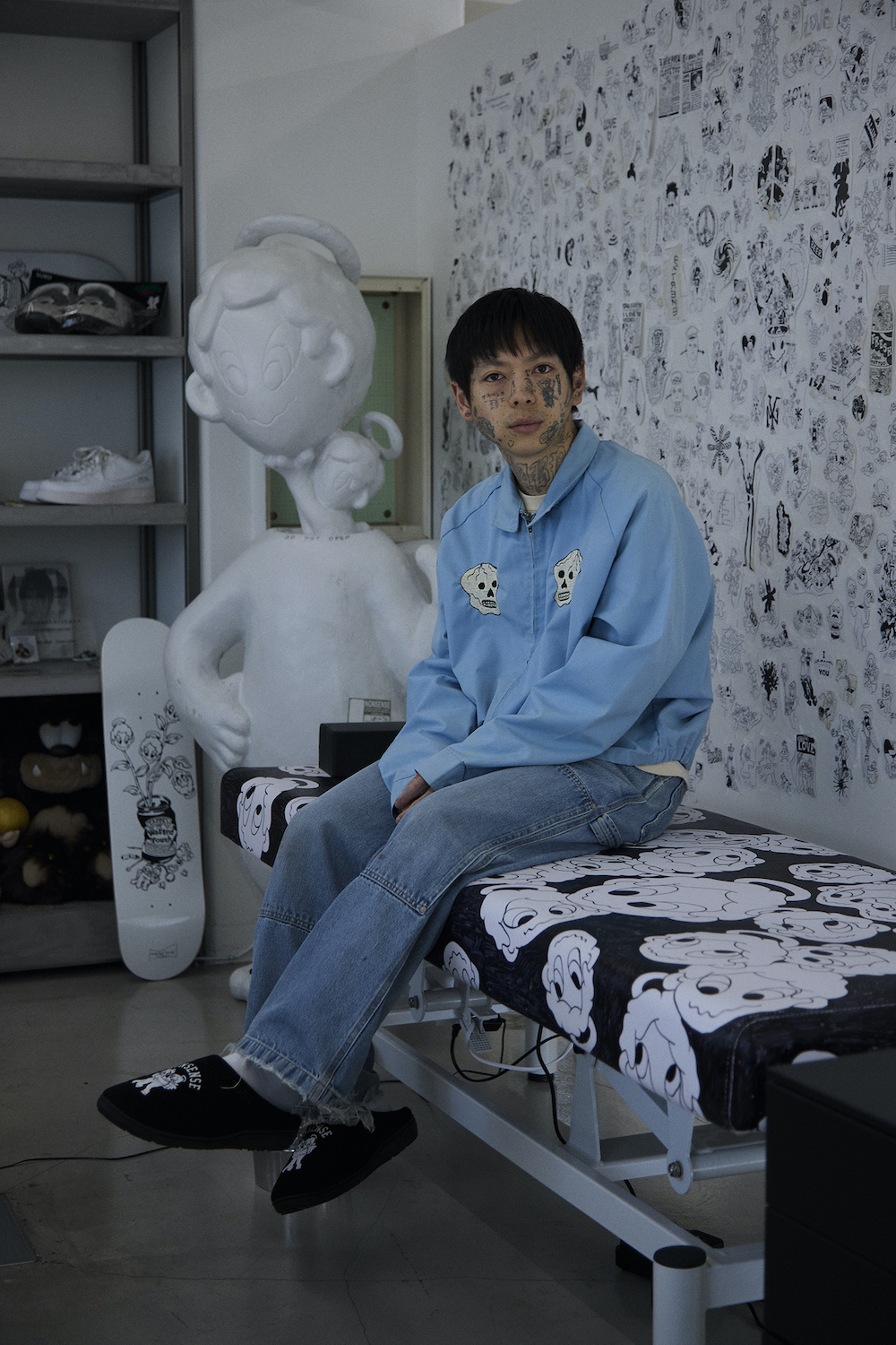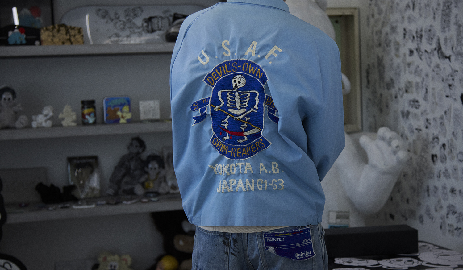 2日目となる火曜日は、古着のジャケット、DAIRIKU(ダイリク)のパンツ、SUBU × TAPPEI(スブ×タッペイ)のシューズなどをコーディネート。