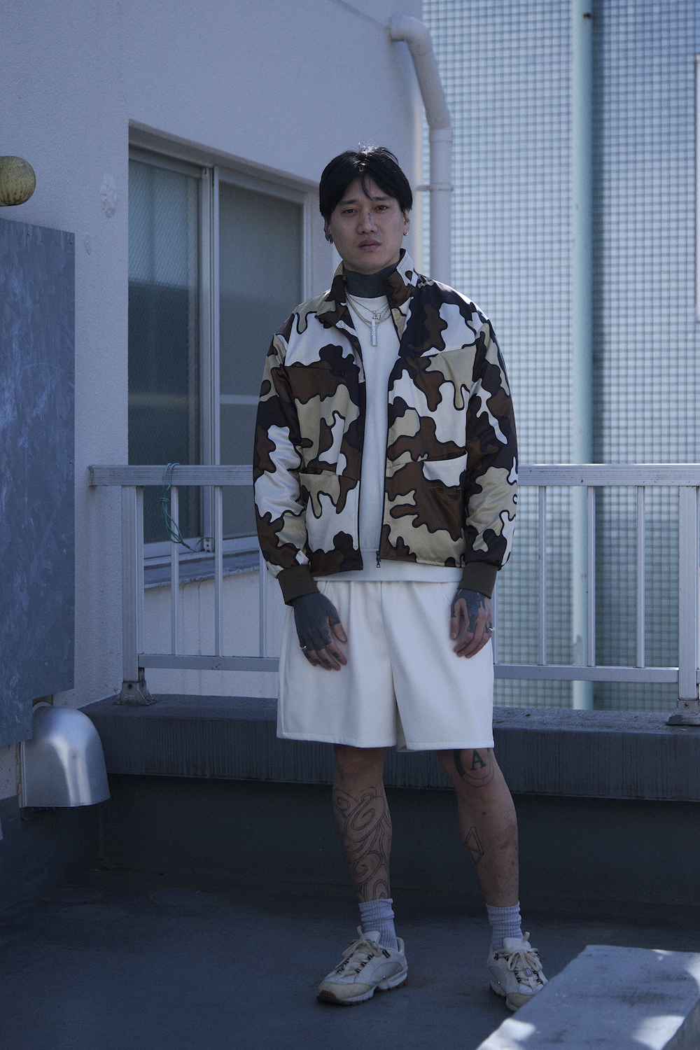 3日目となる水曜日は、RANDY(ランディ)のジャケットとパンツ、SHRINE(シュライン)のアクセサリー、NIKE × JACQUEMUS(ナイキ × ジャックムス)のシューズなどをコーディネート。