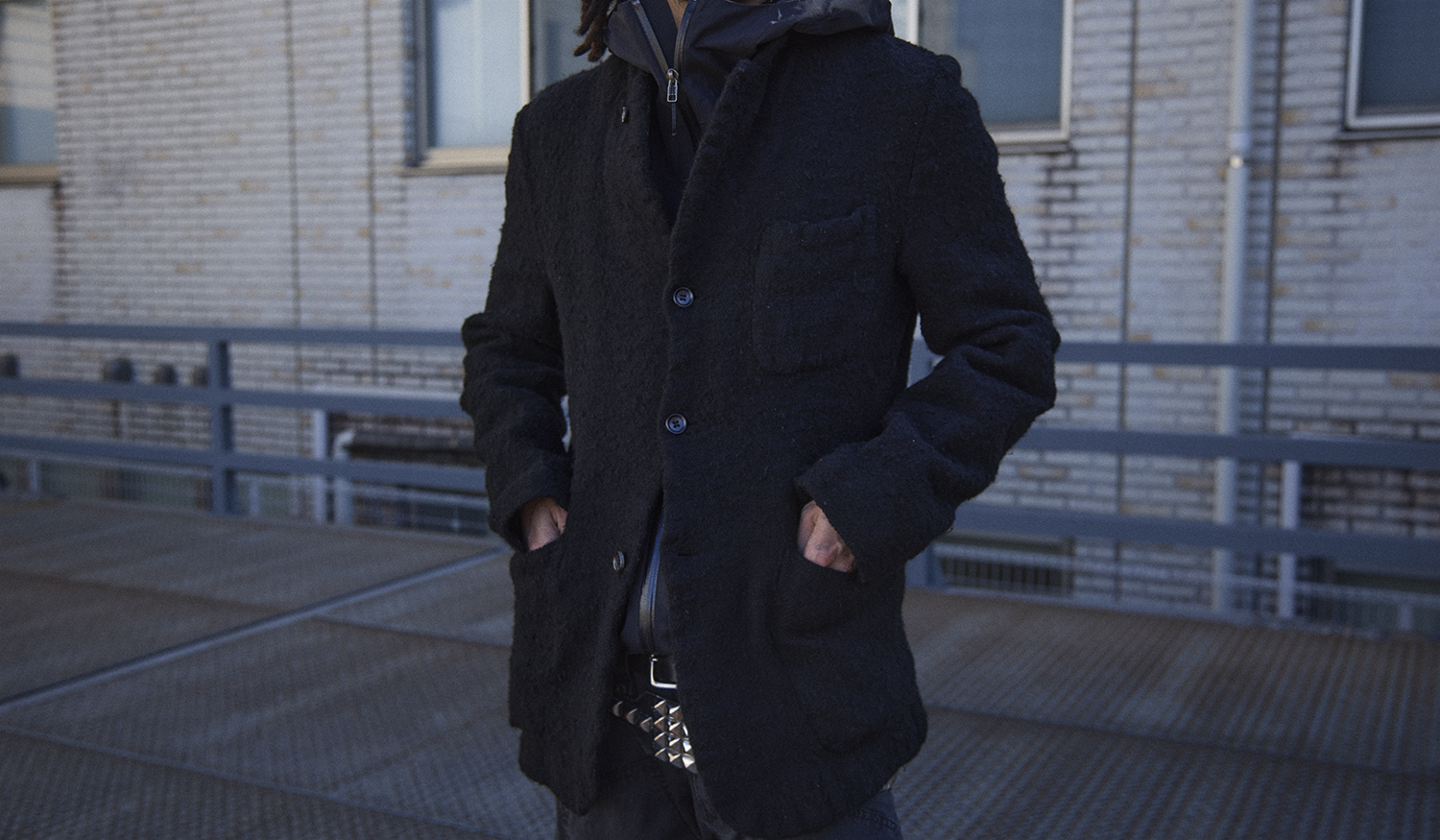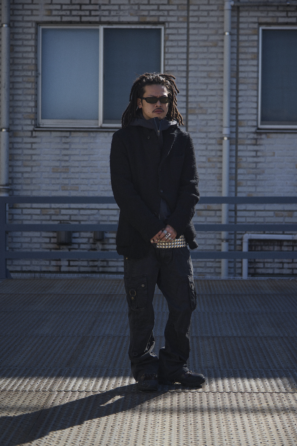Jacket:COMME des GARÇONS Top:ARC’TERYX Belt;Vintage Bottom:Used Shoes:ROA × OUR LEGACY WORK SHOP Ring:CHROME HEARTS