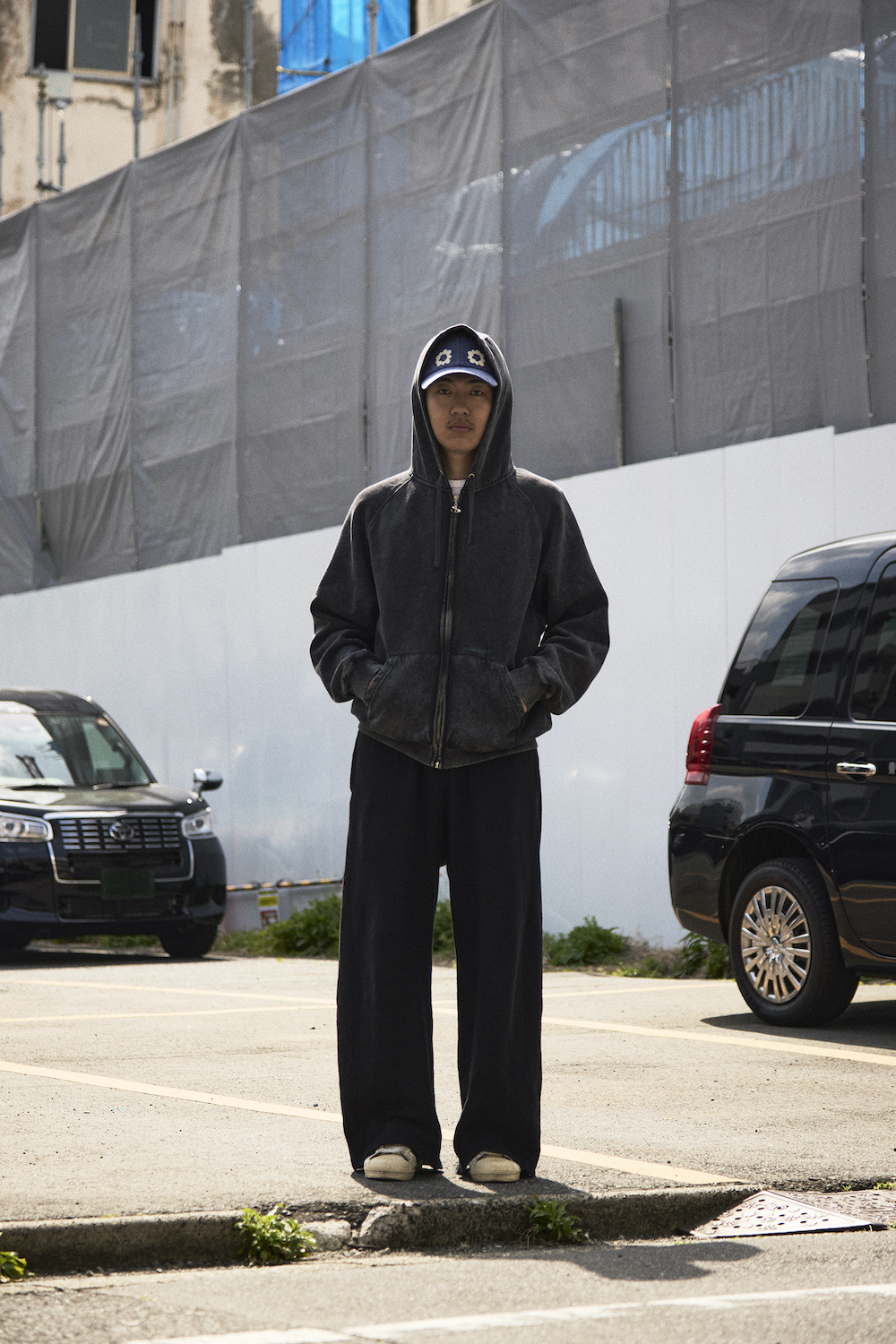 初日となる月曜日は、Yardsale(ヤードセール)のフーディ、ssstein(シュタイン)のパンツ、adidas Originals by Wales Bonner(アディダス オリジナルス バイ ウェールズ・ボナー)のシューズなどをコーディネート。